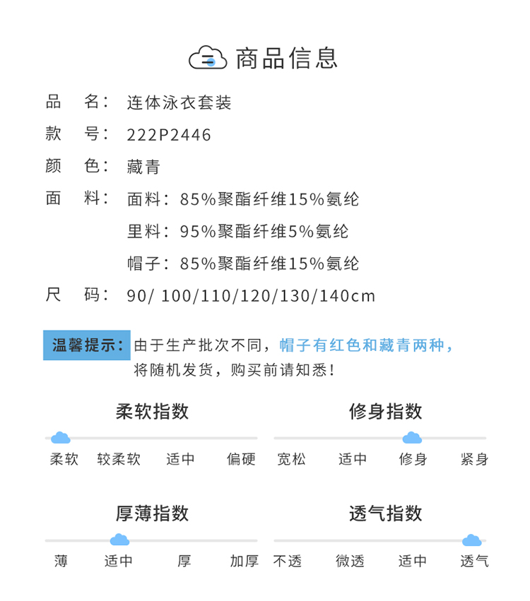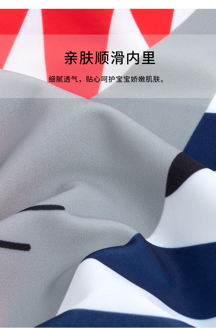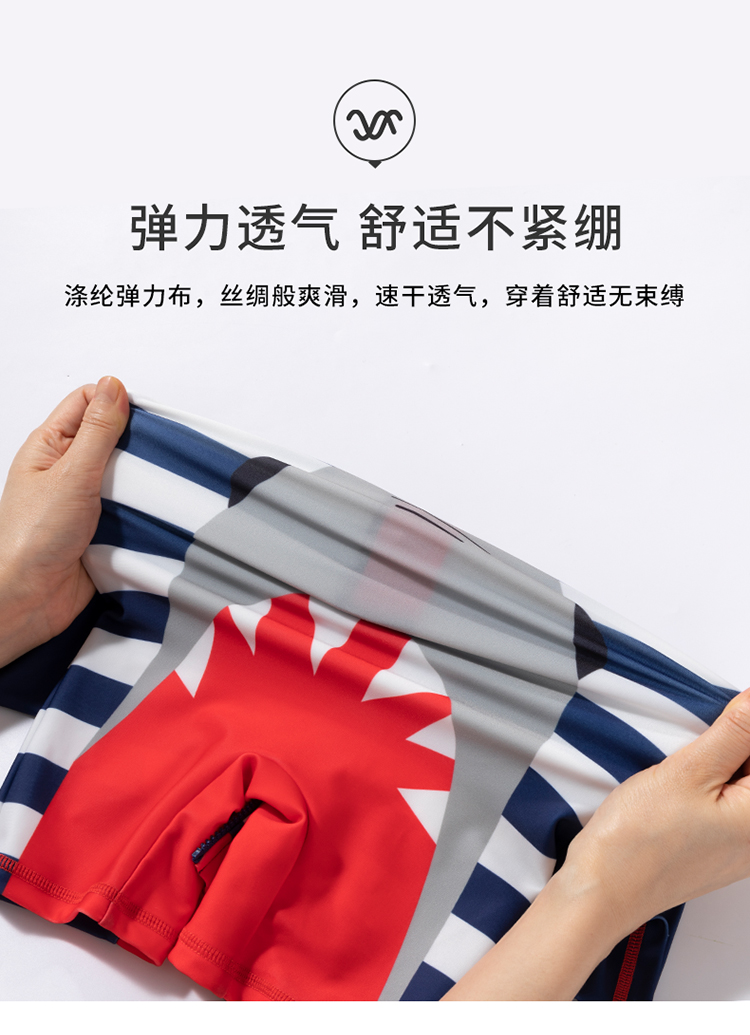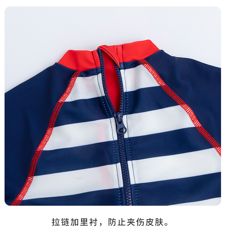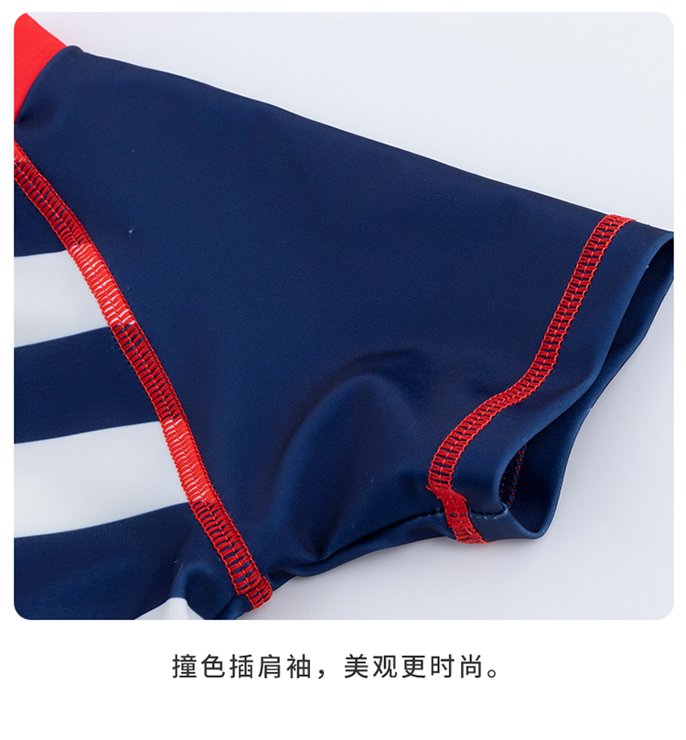 贝贝怡儿童泳衣连体短袖泳装男孩速干清爽游泳衣泳帽套装男童夏季222P2446