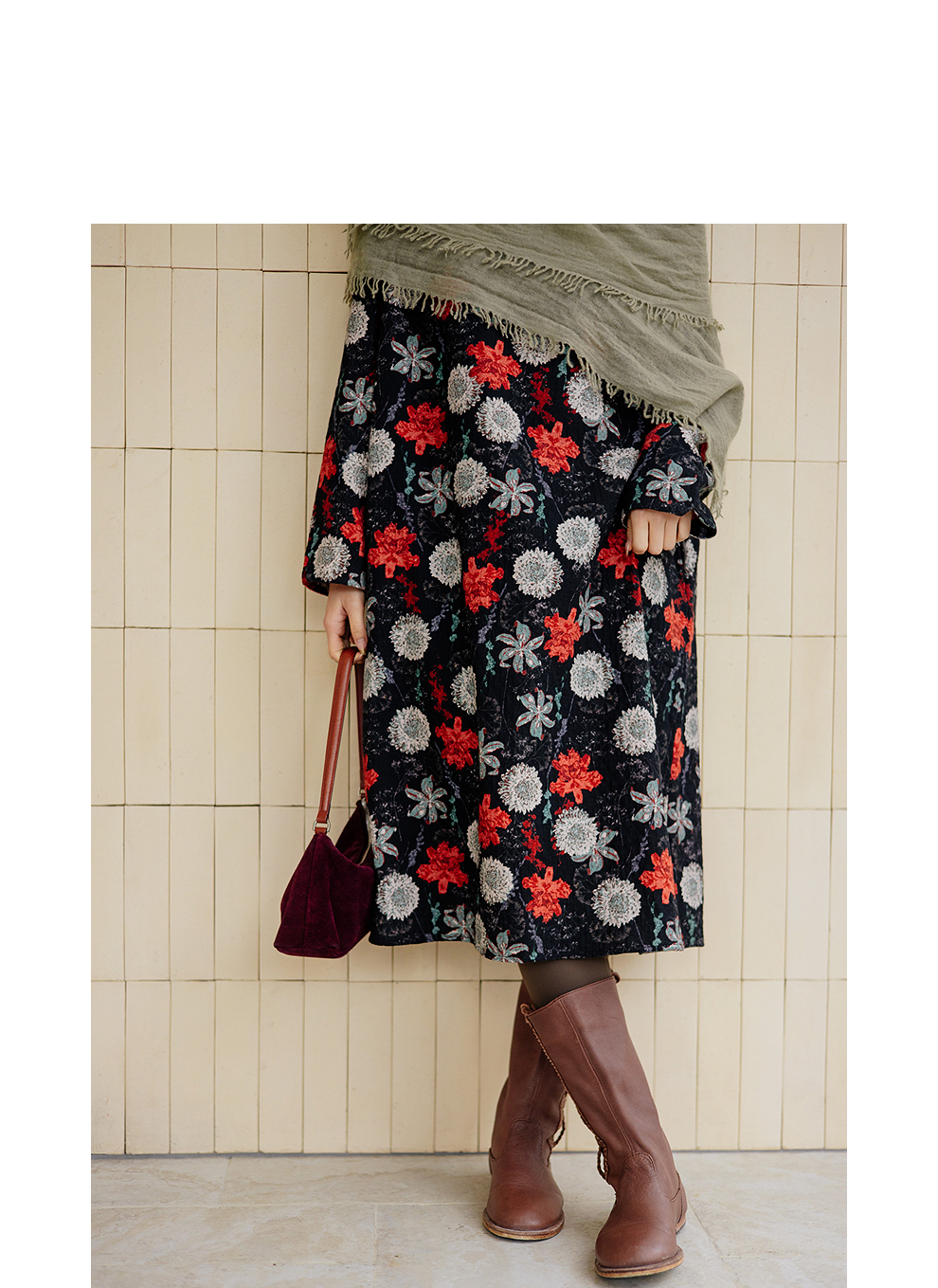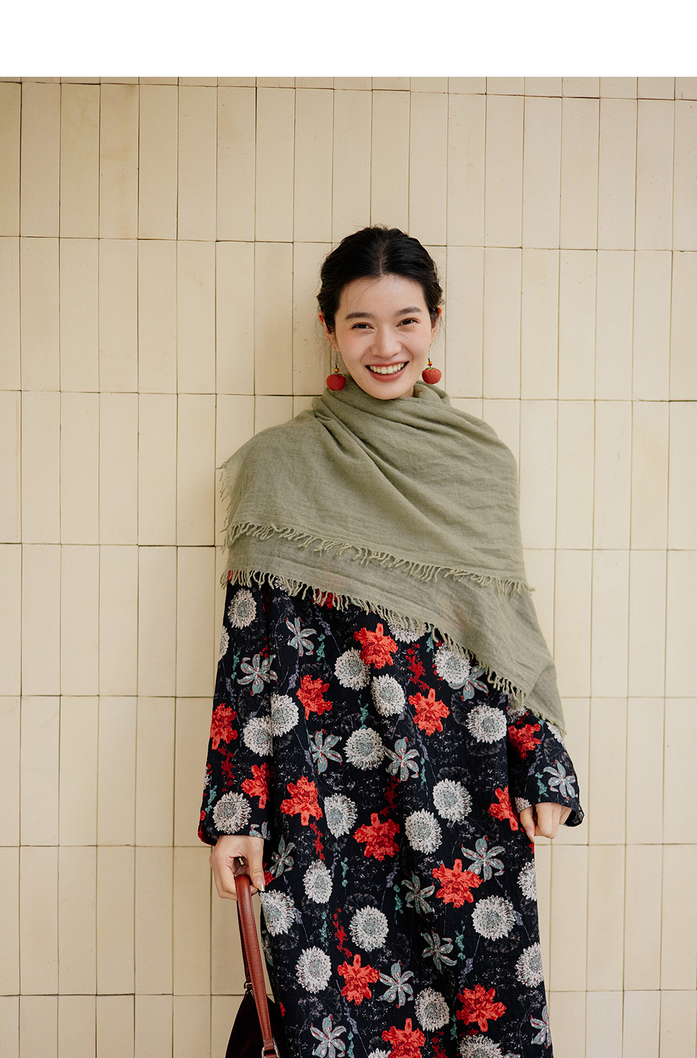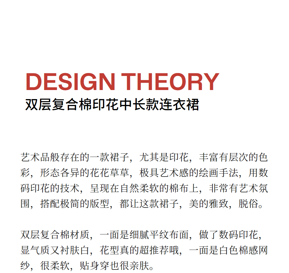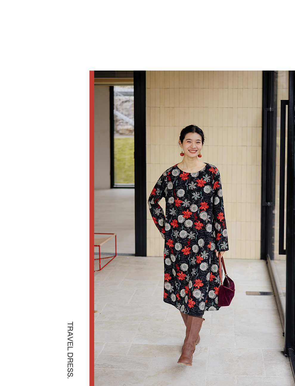 绽放旅行女装006朵/双层复合纯棉印花圆领正常肩长袖中长款连衣裙
