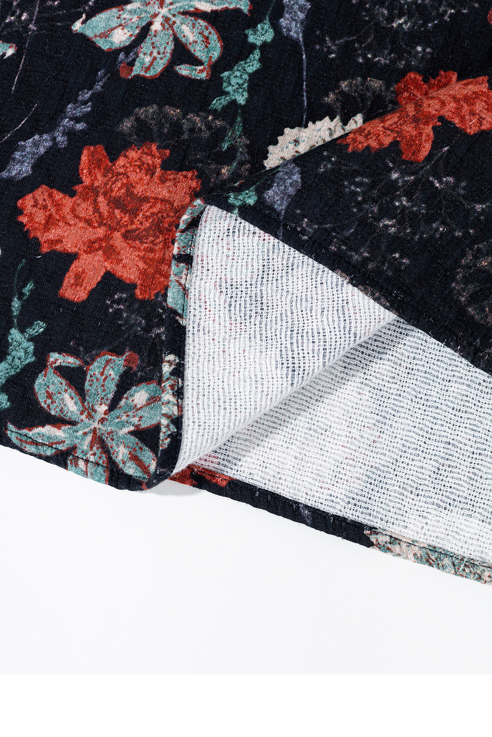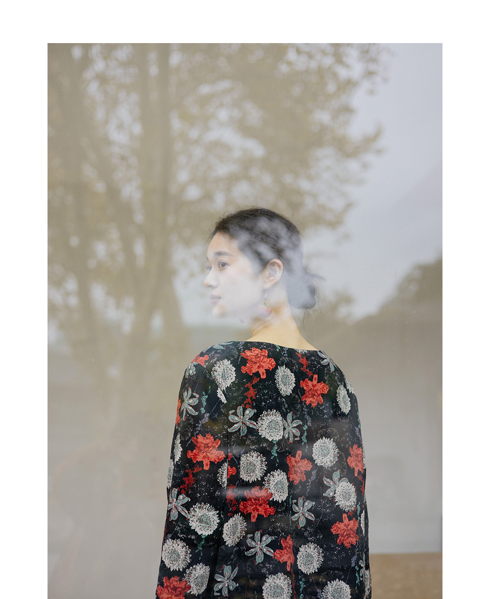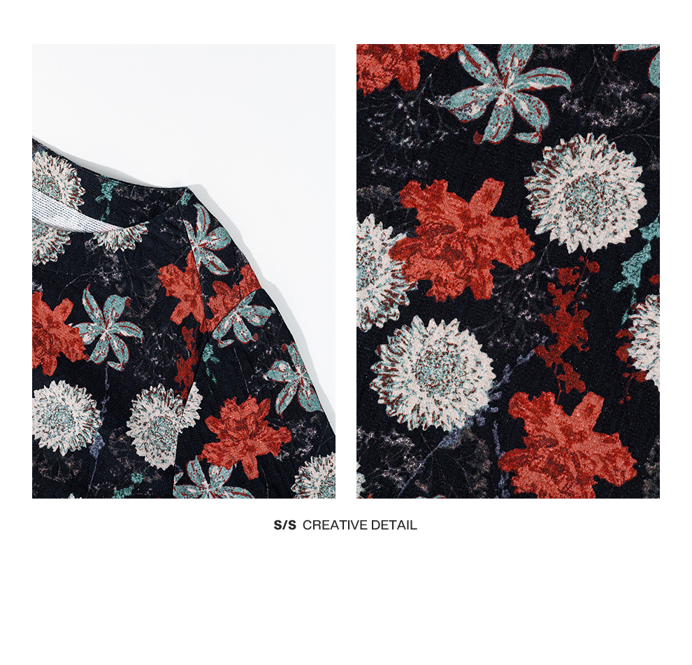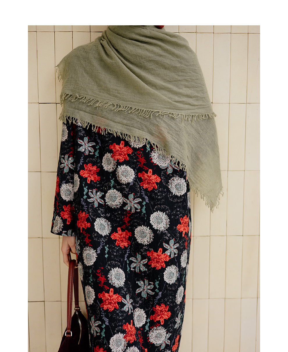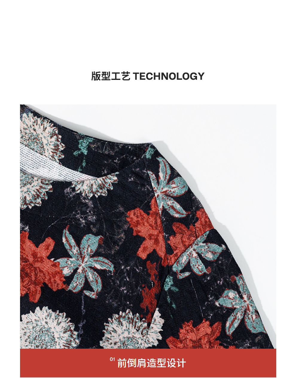 绽放旅行女装006朵/双层复合纯棉印花圆领正常肩长袖中长款连衣裙