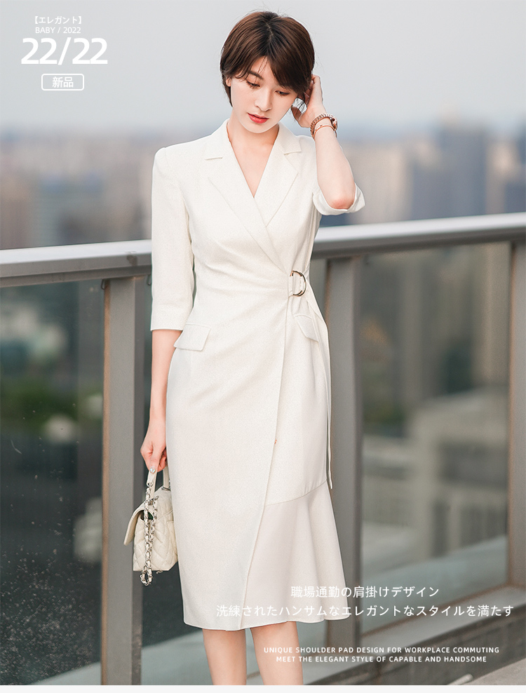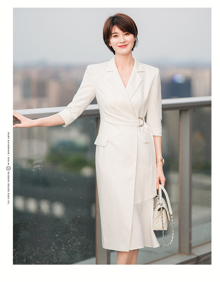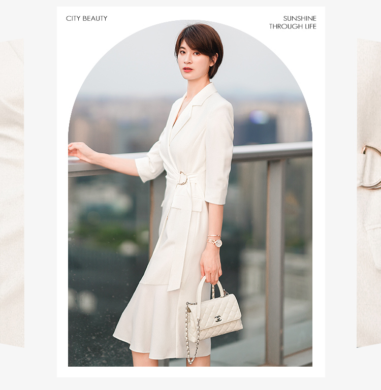 白色法式西装连衣裙女新款气质女神范修身显瘦中长裙子