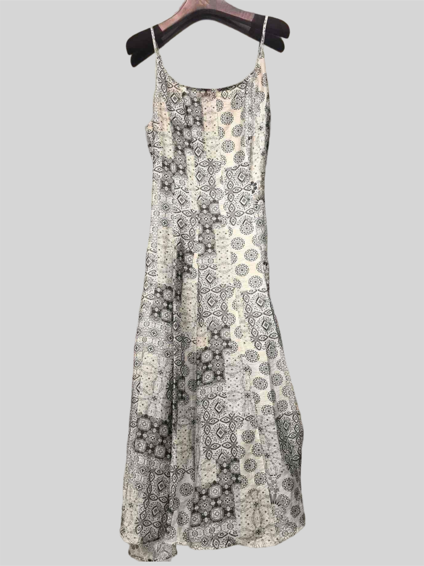 SZ2S123_漆黑色_连衣裙_春夏_细肩带吊带长款复古印花_高级女装_BERNIEELEN 伯妮斯茵