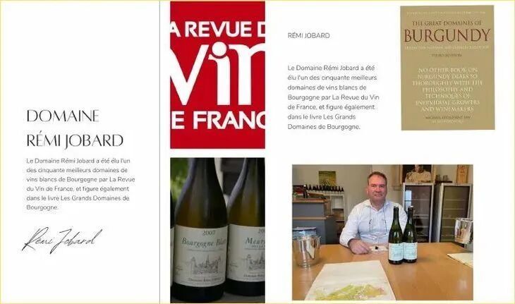 Rémi Jobard还曾被法国葡萄酒杂志La Revue du Vin de France评为“勃艮第50大白葡萄酒酒庄之一”,并收录进《勃艮第伟大名庄》(The Great Domaines of Burgundy)、CC《勃艮第之酒》(The Wines of Burgundy)一书。
