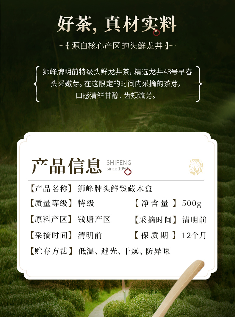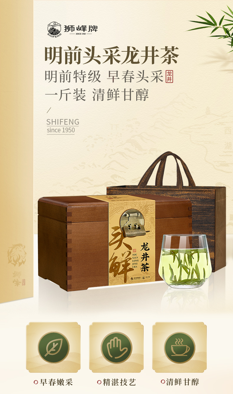 【2026年新茶现货】狮峰丨龙井茶 明前特级 头鲜头采 绿茶 500g 臻藏木盒装