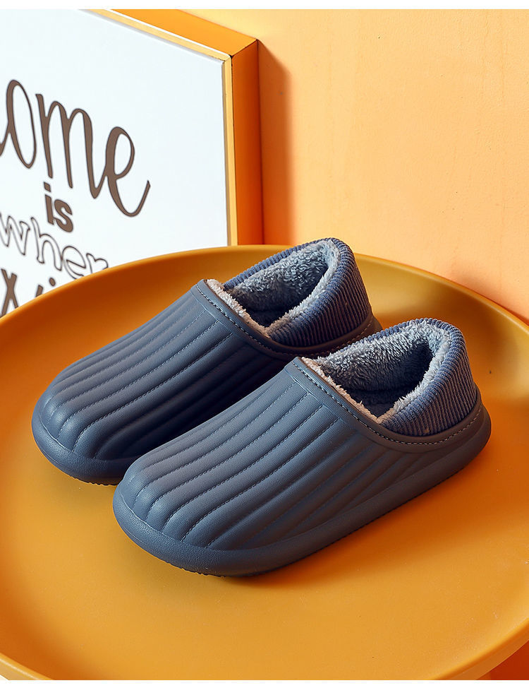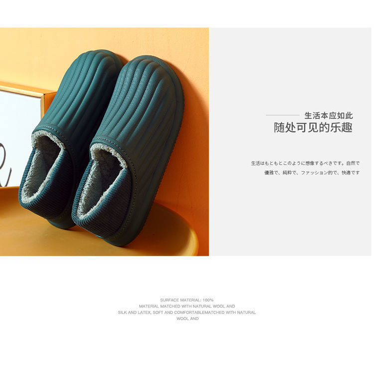 Uchino包跟防水男棉拖鞋居家室内厚底保暖防滑加绒情侣棉鞋