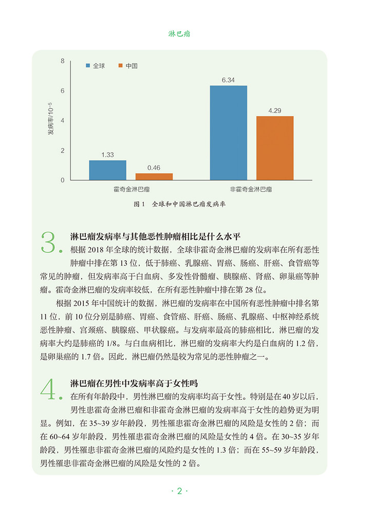 2. 中国的淋巴瘤发病率与世界平均水平相比如何 / 1