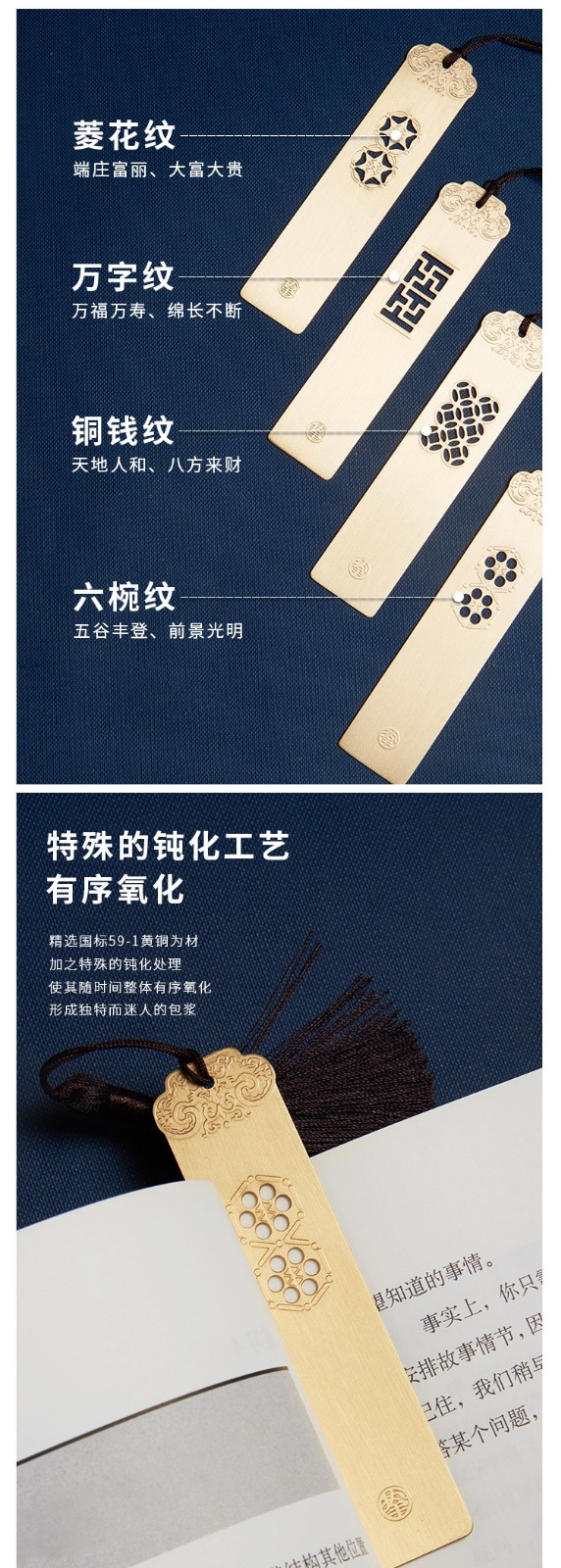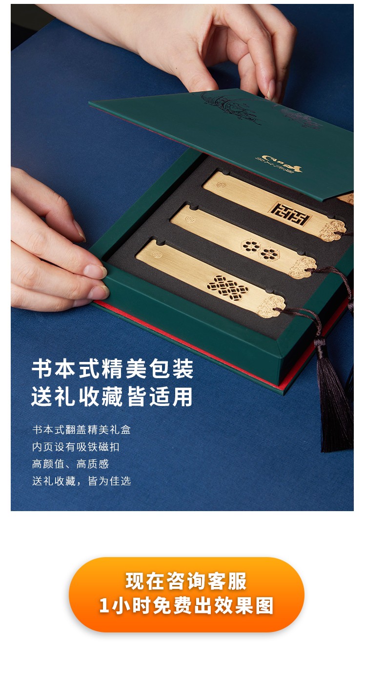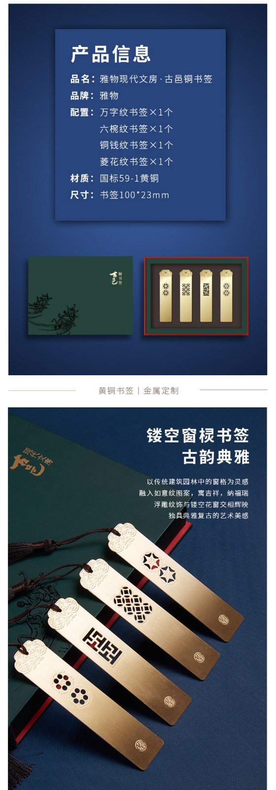 清朴堂黄铜书签古典文房用创意简约文艺文创金属礼物古风文具礼物古邑书签套装