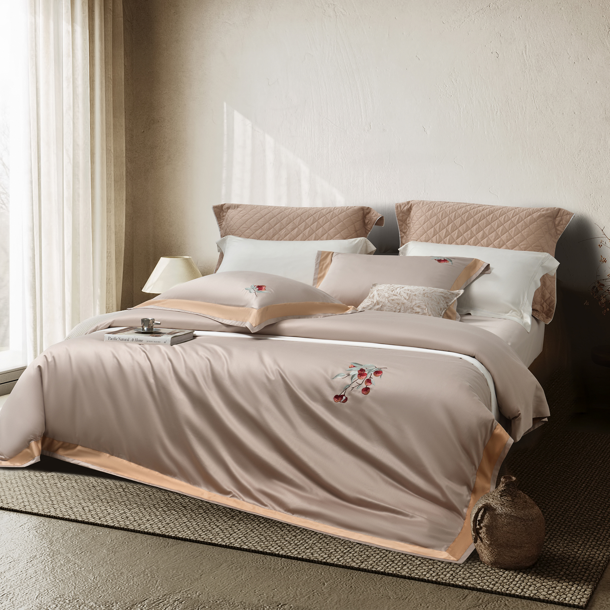 雅韵宫廷刺绣系列 大吉大荔-烟灰 80支全棉贡缎