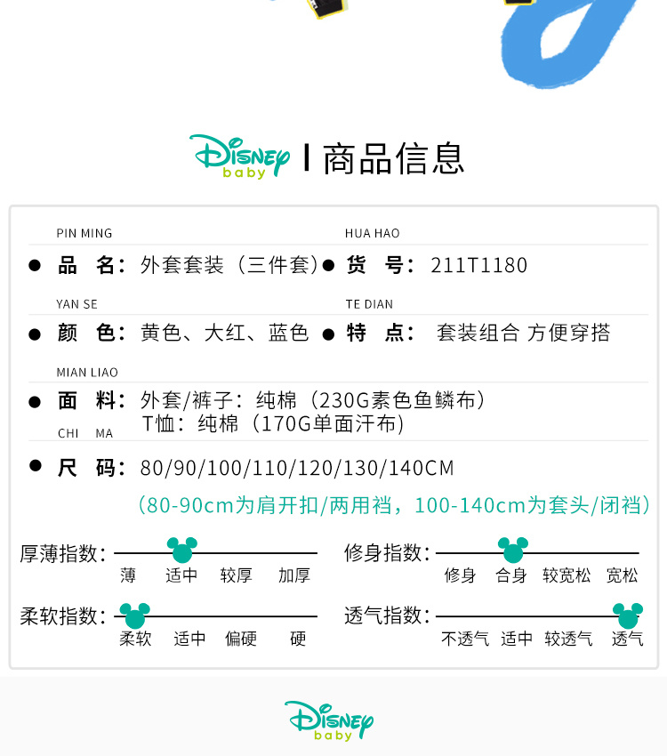 迪士尼男童春秋帅气潮装儿童外套套装三件套211T1180