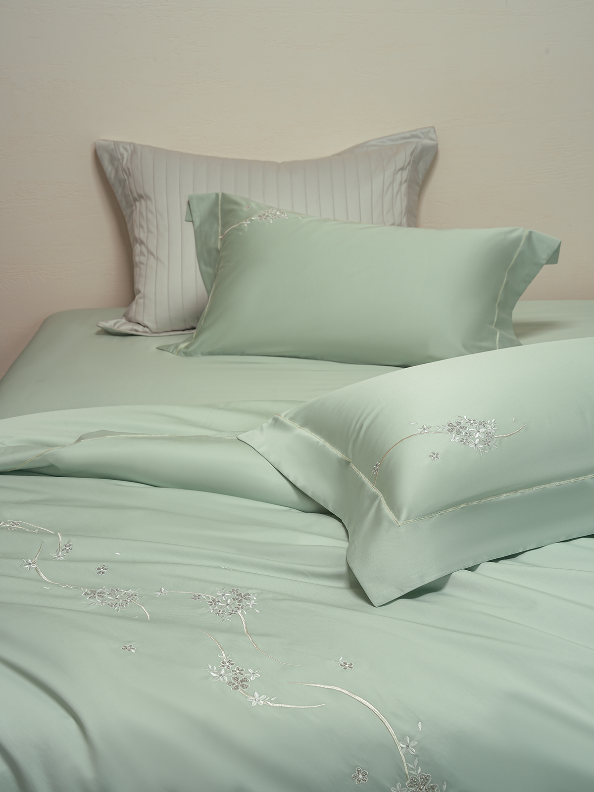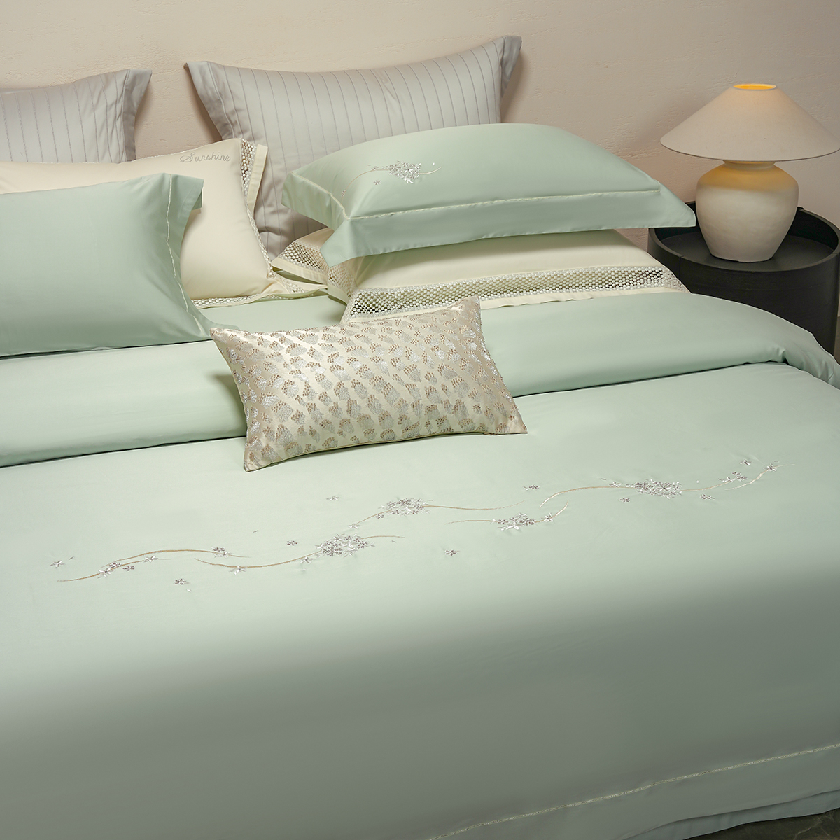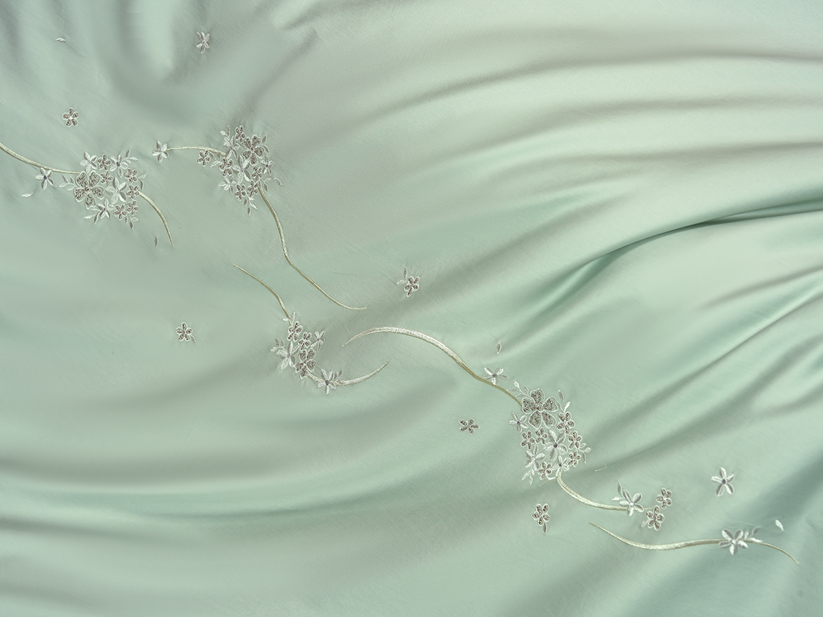 鎏金澳棉四件套 春樱漱雪(奶白绿)