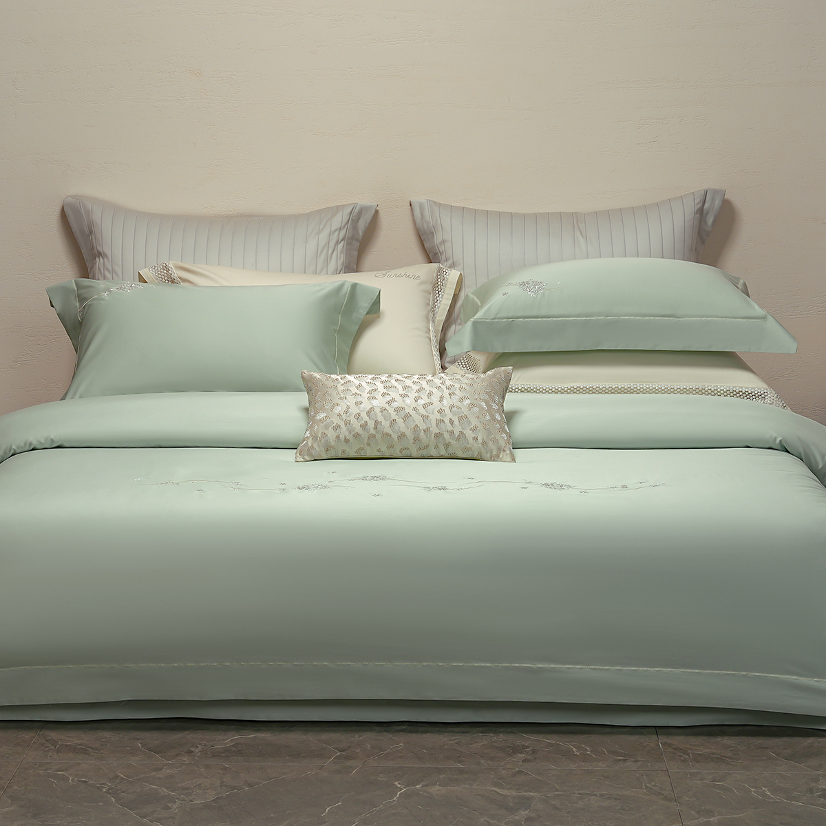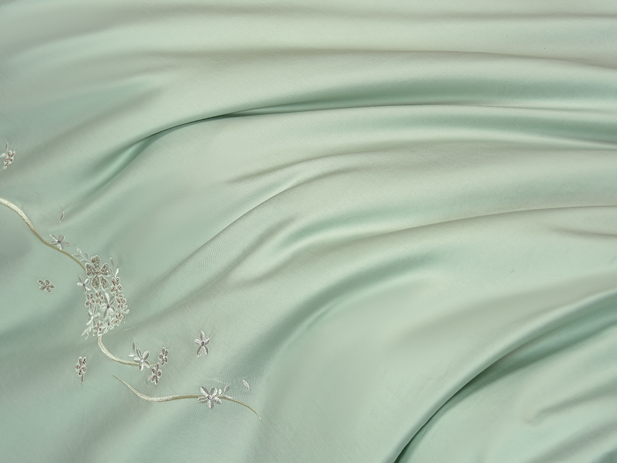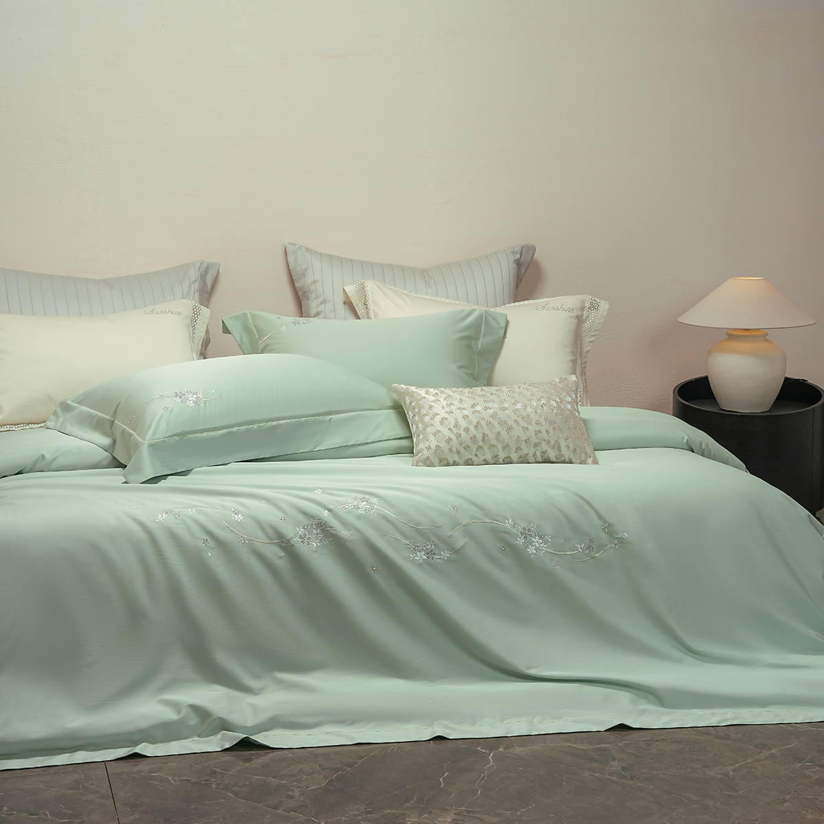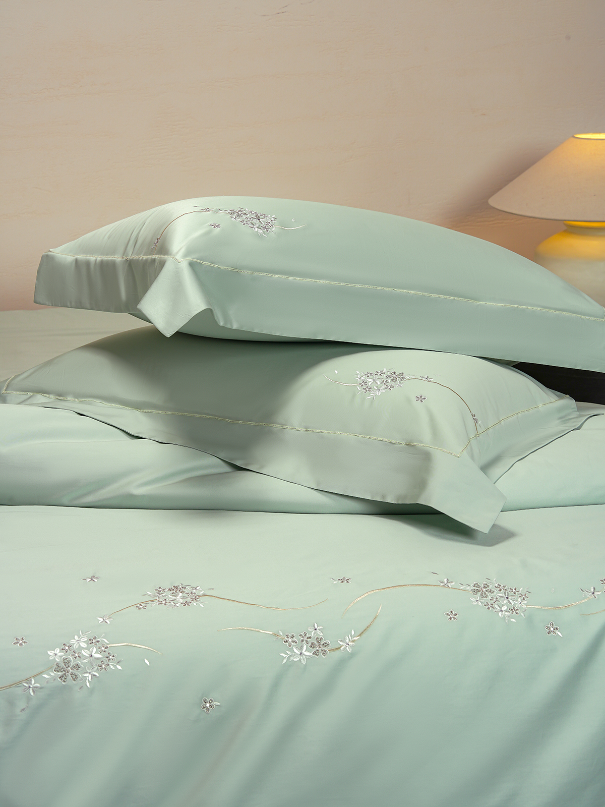 鎏金澳棉四件套 春樱漱雪(奶白绿)