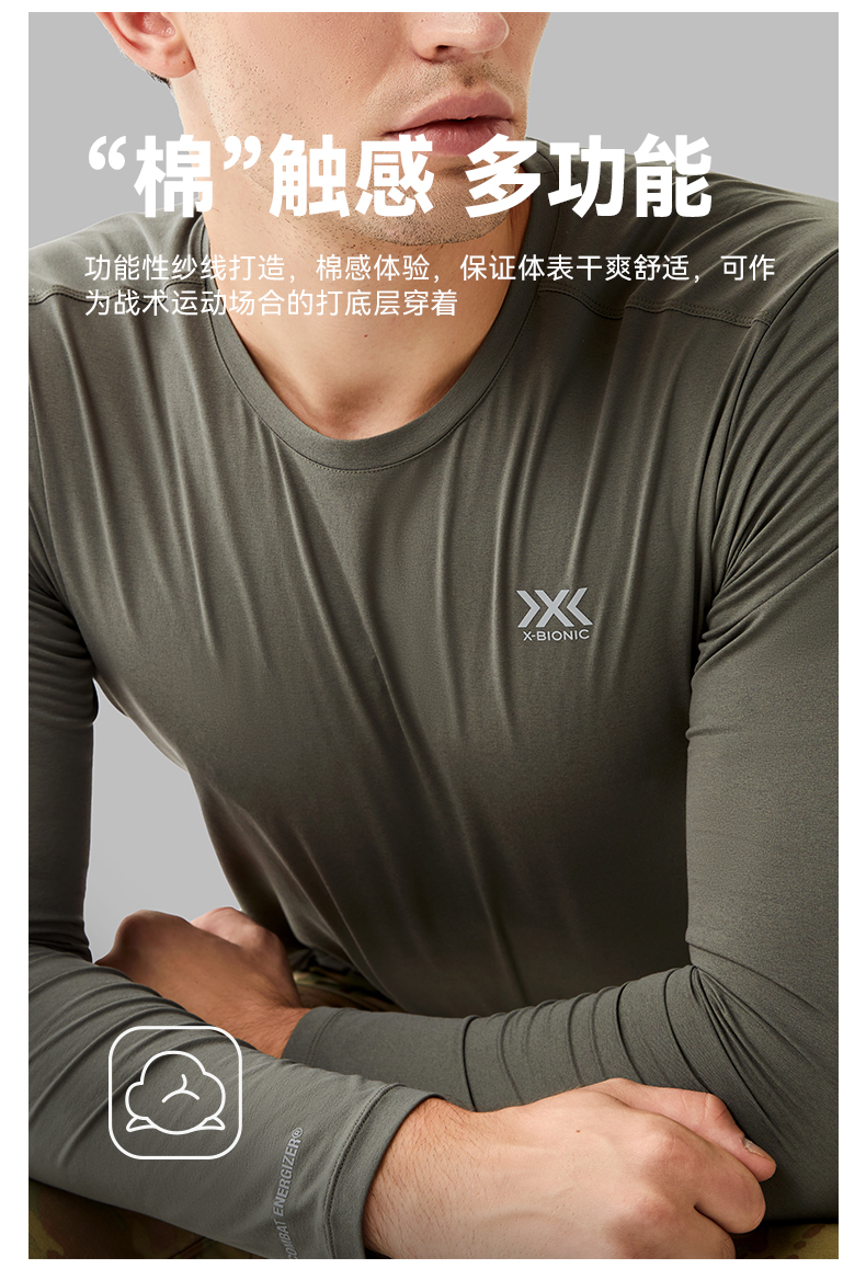 X-BIONIC 战术长袖T恤男 秋冬棉感 弹力保暖亲肤贴身打底休闲长袖24980