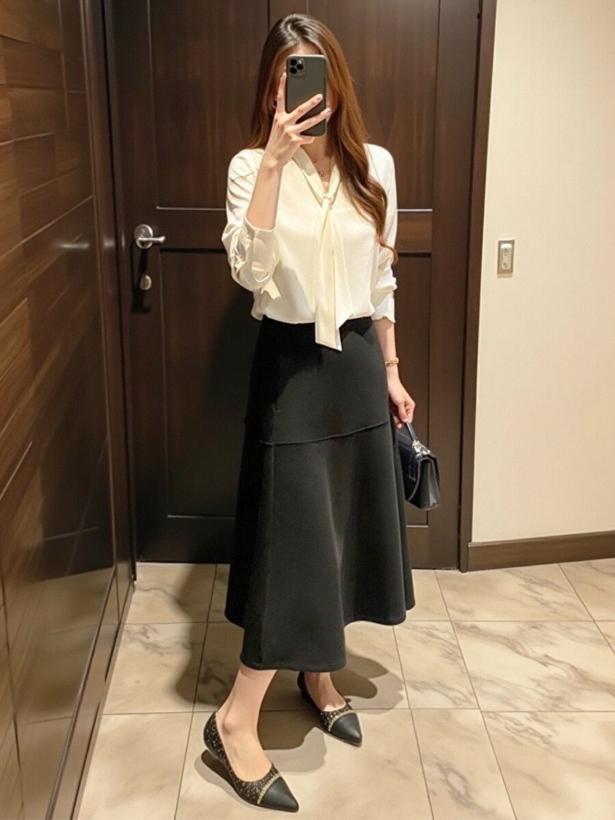 恰好的裙长可以遮住大部分的腿,只露出纤细小腿和脚踝