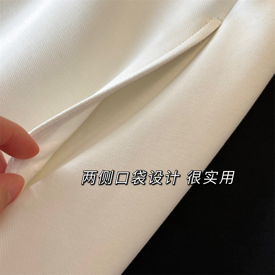 呈A字型的开放裙摆,两侧口袋设计,增加休闲感