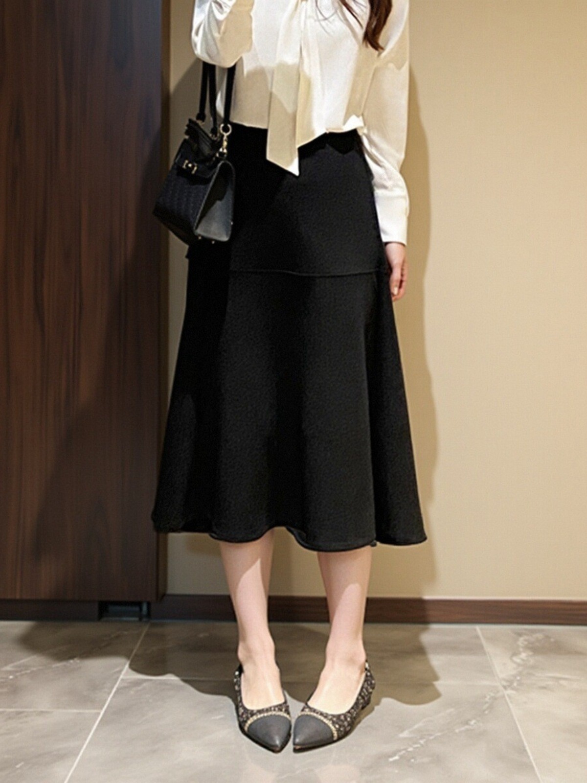 高腰中长款设计,裙身立体剪裁拼接,简约又不会丢了设计感