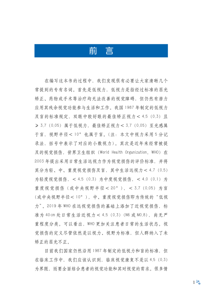 低视力是指经过标准的屈光矫正、药物或手术等治疗均无法改善的视觉障碍,但仍然有潜力应用其残余视觉功能参与生活和工作。根据不同的疾病,需要跟患者制定不同的随访计划。此外,需要熟练掌握各种屈光矫正的手段,普通的单光镜、双光镜、渐变镜、软镜、RGP、巩膜镜等等,必要的时候可能需要组合使用。对于视觉损伤患者的验光非常具有挑战,往往这类患者存在配合度弱、屈光介质不清等,需要低视力专科医生熟练掌握各类验光技巧。最后,还应该深刻掌握各类型的视觉训练,包括弱视训练、双眼视训练和不同助视器的使用训练等。尤其是对于儿童低视力患者非常重要。相信对眼科各级医师提高眼科临床诊疗水平均有益处。