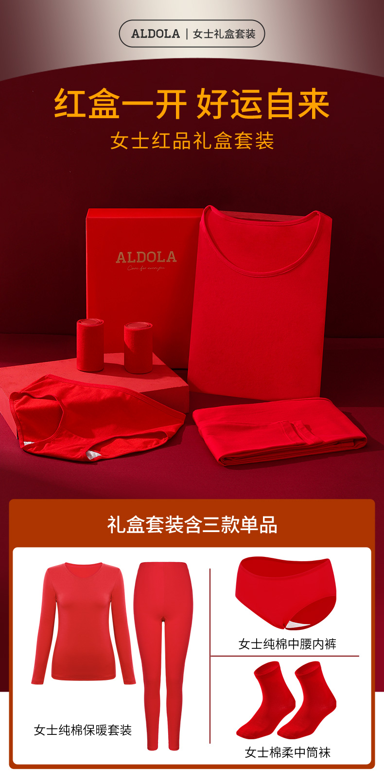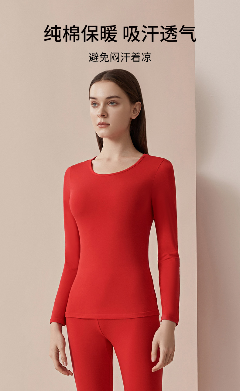 雅黛丽保暖内衣套装本命年红色秋衣秋裤内裤袜子蛇年结婚薄款打底
