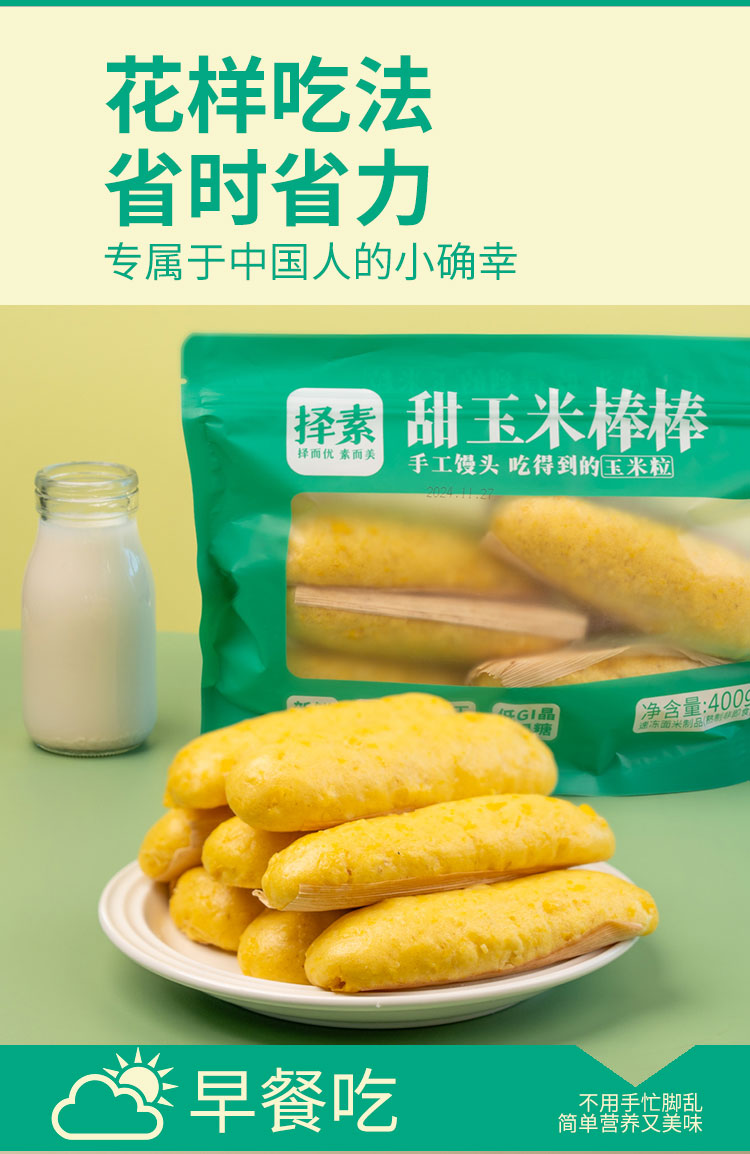 择素有机面甜玉米棒棒 400g/袋 一包8根 鲜玉米粒爆浆香甜面点 6分钟蒸出幸福早餐