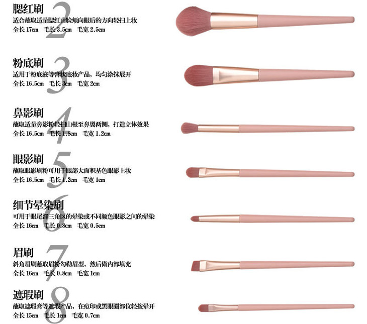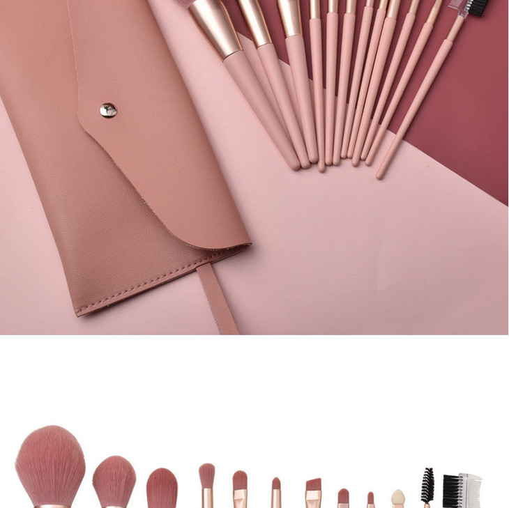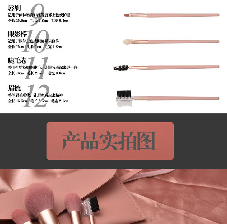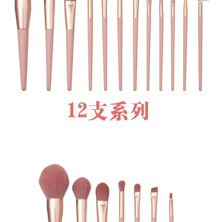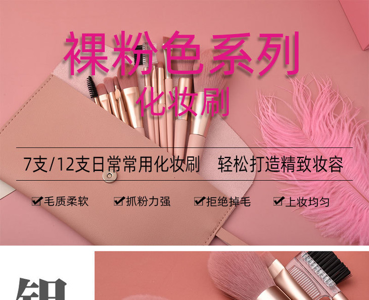 【美妆个护】7支/12支裸粉色化妆刷 美妆工具套装 散粉腮红眼影刷包