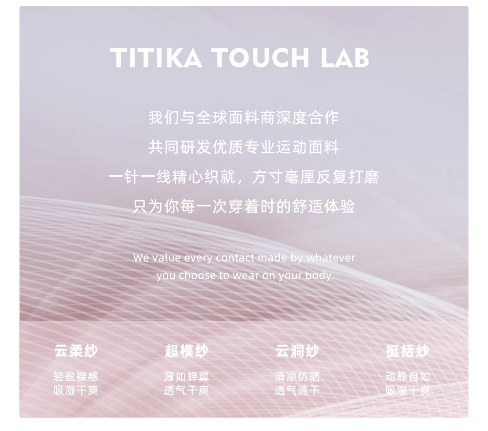 - 2009年,Titika Active Couture诞生于北美时尚之都,重新定义运动服饰,让运动时尚,前卫、性感,更宣扬一种无畏自由的生活态度。TITIKA缇缇卡不断求变,为品牌添加多种元素