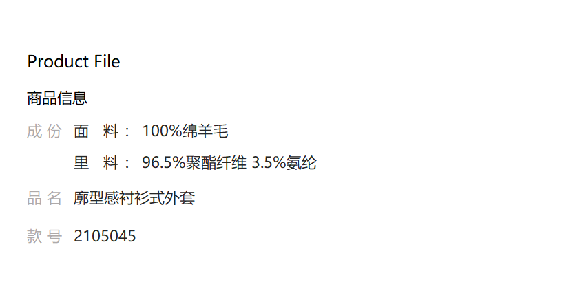 休闲风-廓型感衬衫式羊毛外套 - 轻奢百搭通勤宽松大衣 2105045
