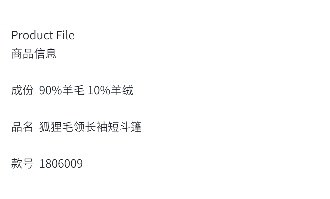 定制—复古风—毛领可脱卸优雅时尚长袖羊毛羊绒短款斗篷 1806009