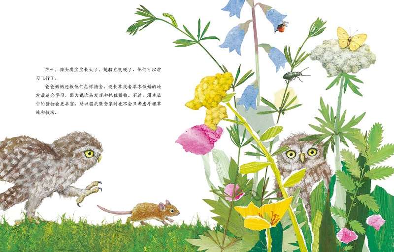 本书讲述了猫头鹰的成长历程。猫头鹰小伙成年之后,要独自一人在外闯荡,准备成家立业。首先他要寻找一个合适的住处,住处需要有丰足的食物和舒适的环境。安家不是件容易的事,他找啊找,历尽千辛,终于找到理想的家。然后他要结婚,生子,为孩子的健康成长各处奔忙。年幼的猫头鹰也在逐渐长大,*后离开父母,独自寻找他们自己新的家园。