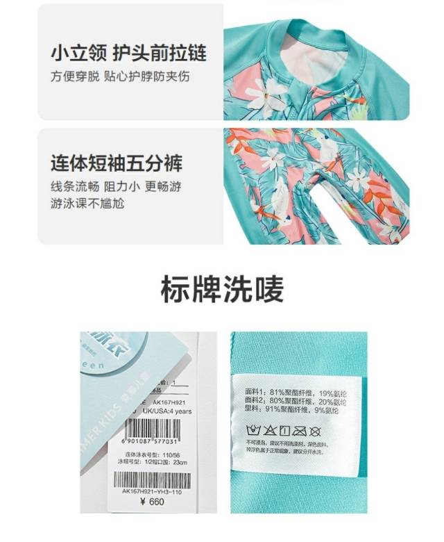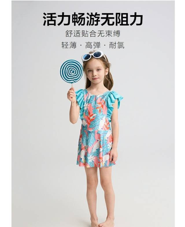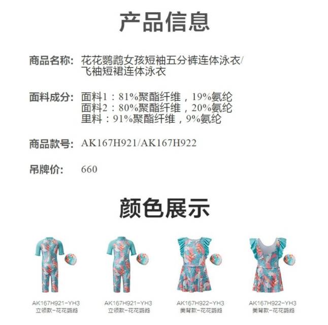 【春上新】8楼爱慕儿童Aimer Kids女孩2件装-花花鹦鹉短袖五分裤连体泳衣AK167H921,吊牌价660元