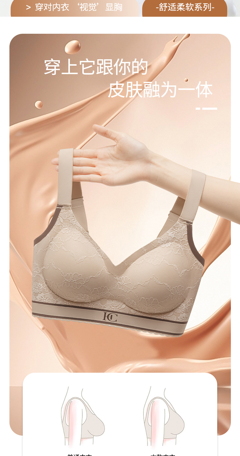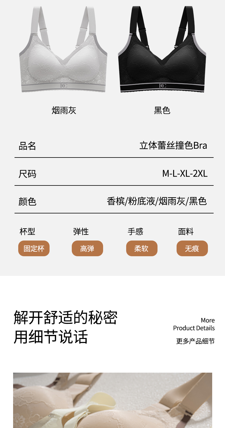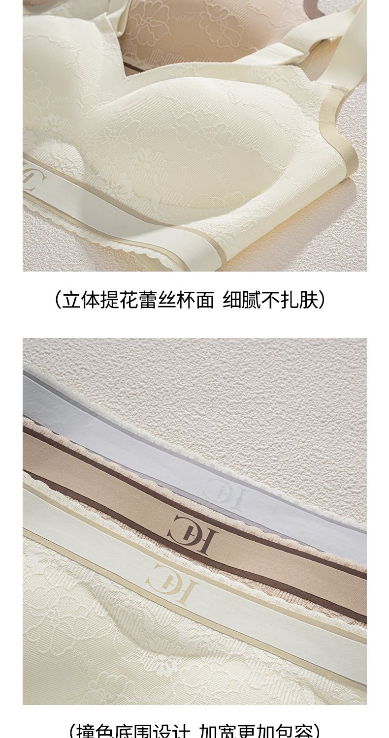 【琼夫人--立体提花撞色蕾丝Bra】聚拢有型圆润挺括 性感舒适亲肤 3D立体提拉养护杯 高颜值法式提花蕾丝 双重防滑设计 收副乳平赘肉 东方美学色系