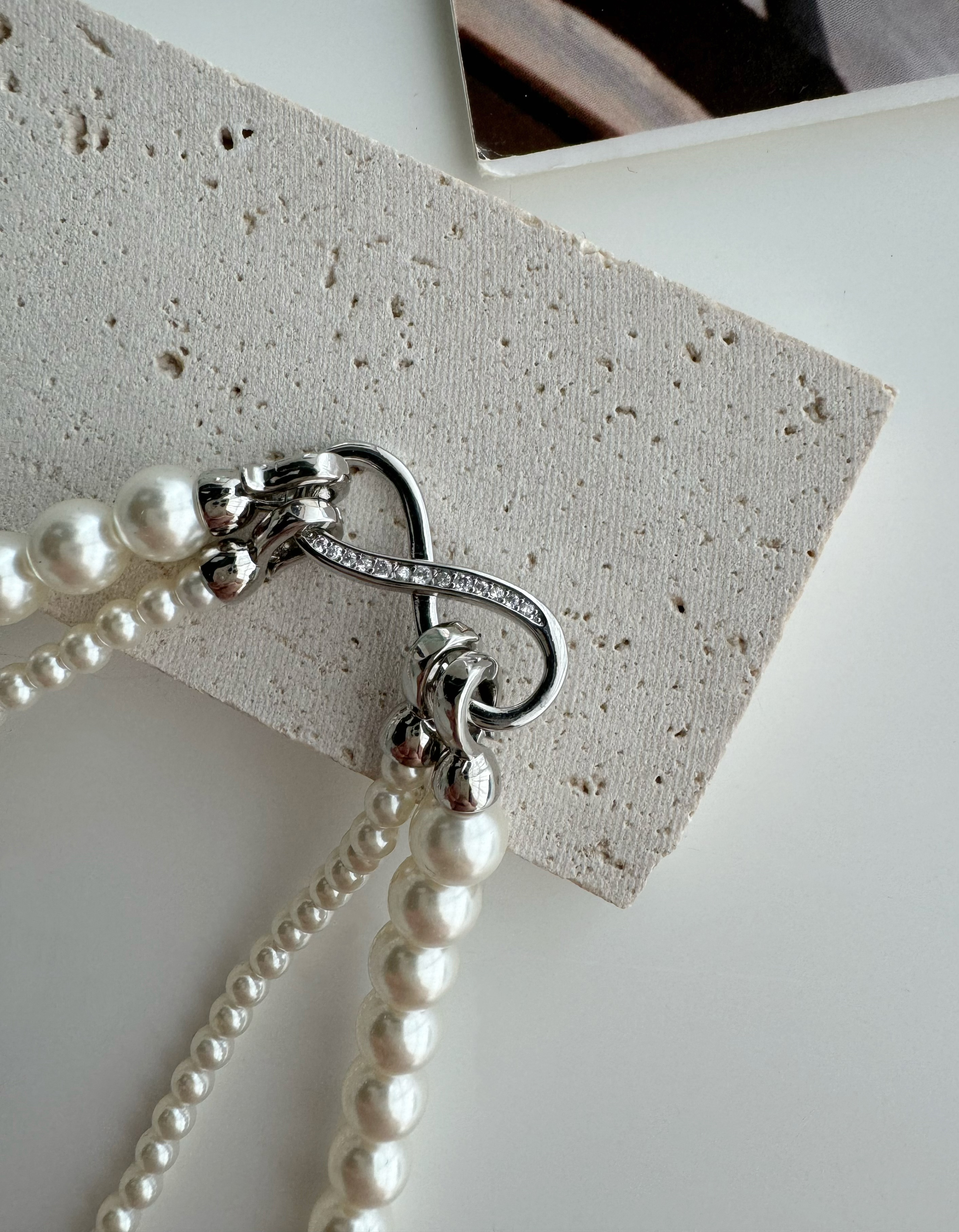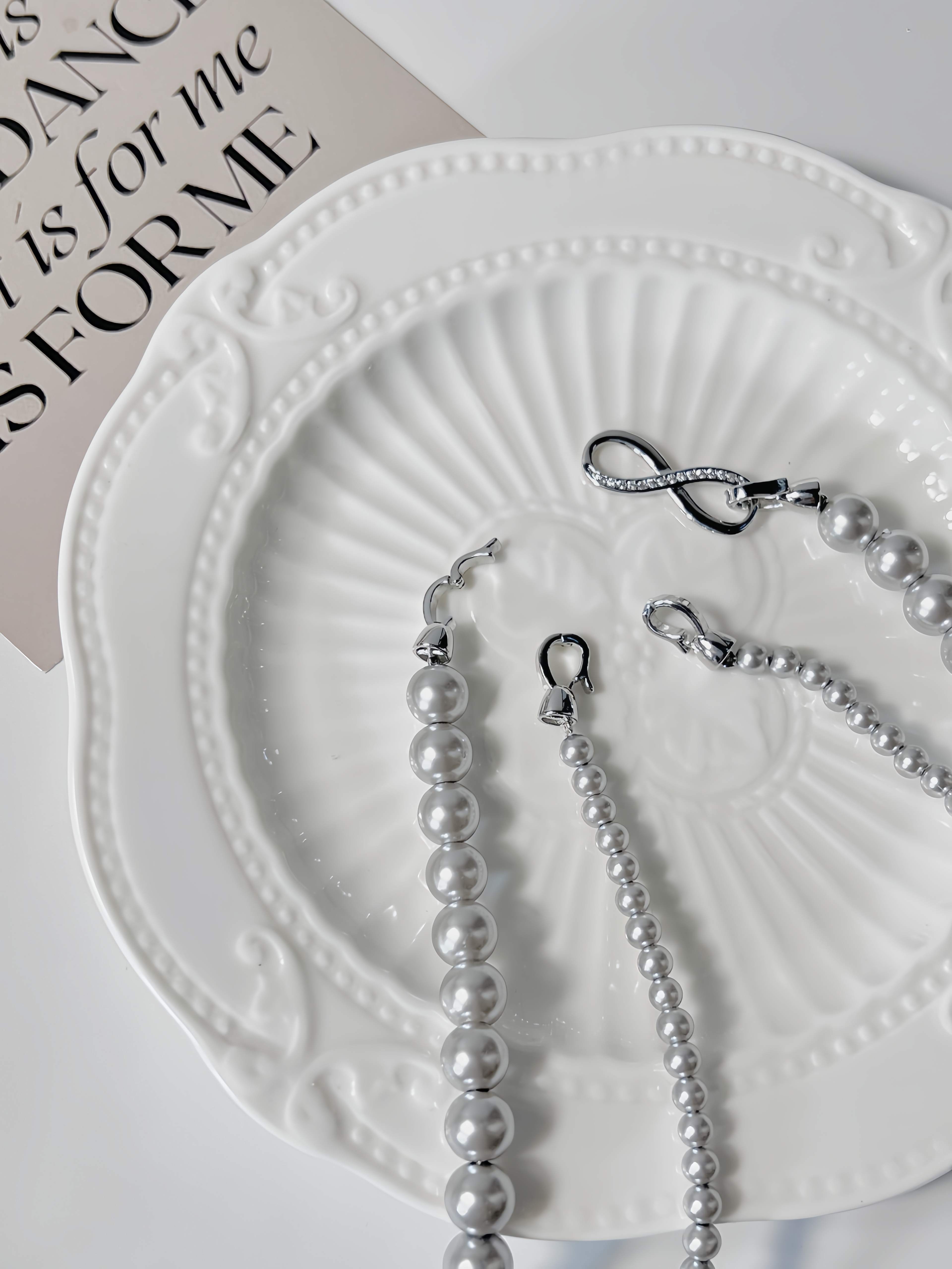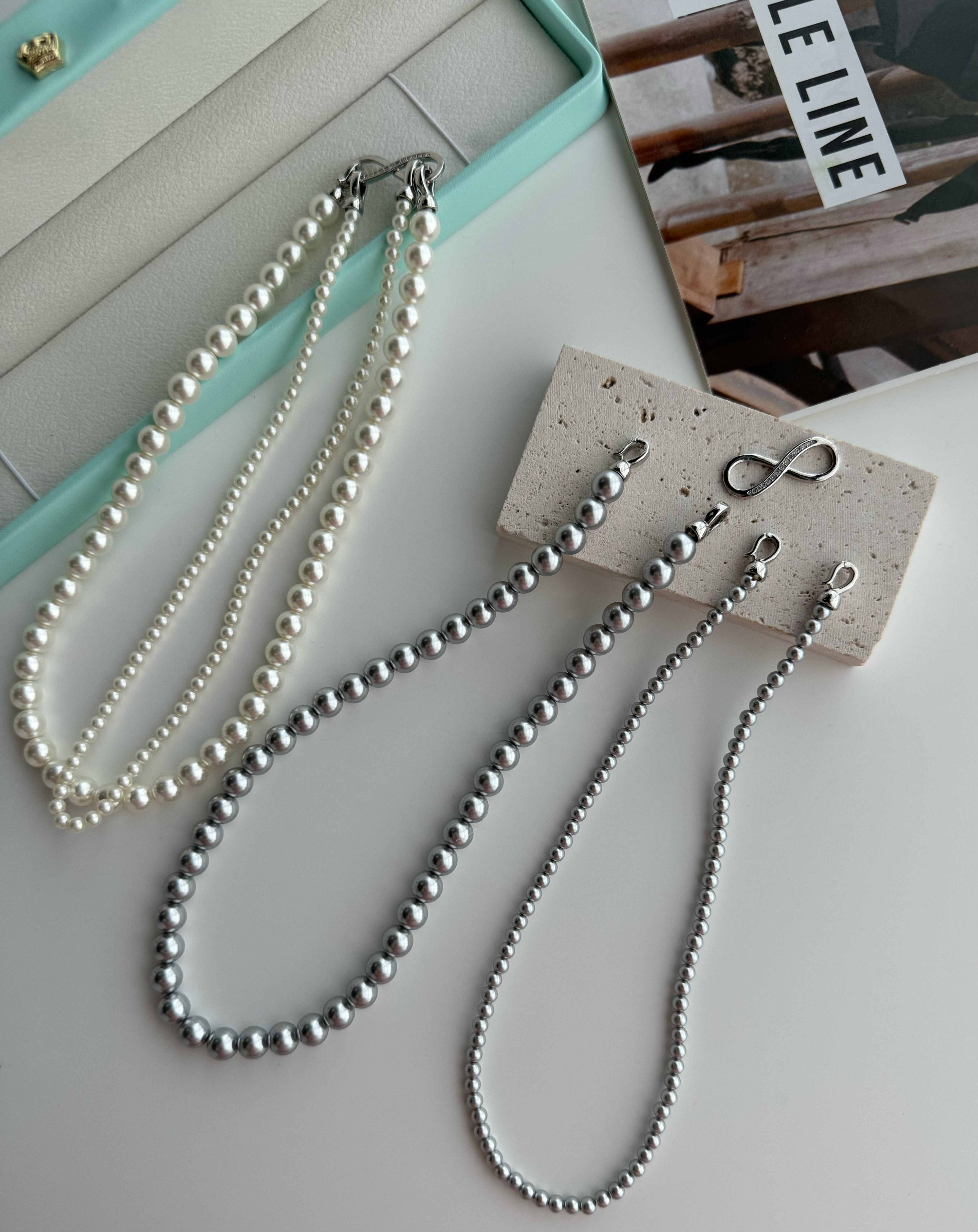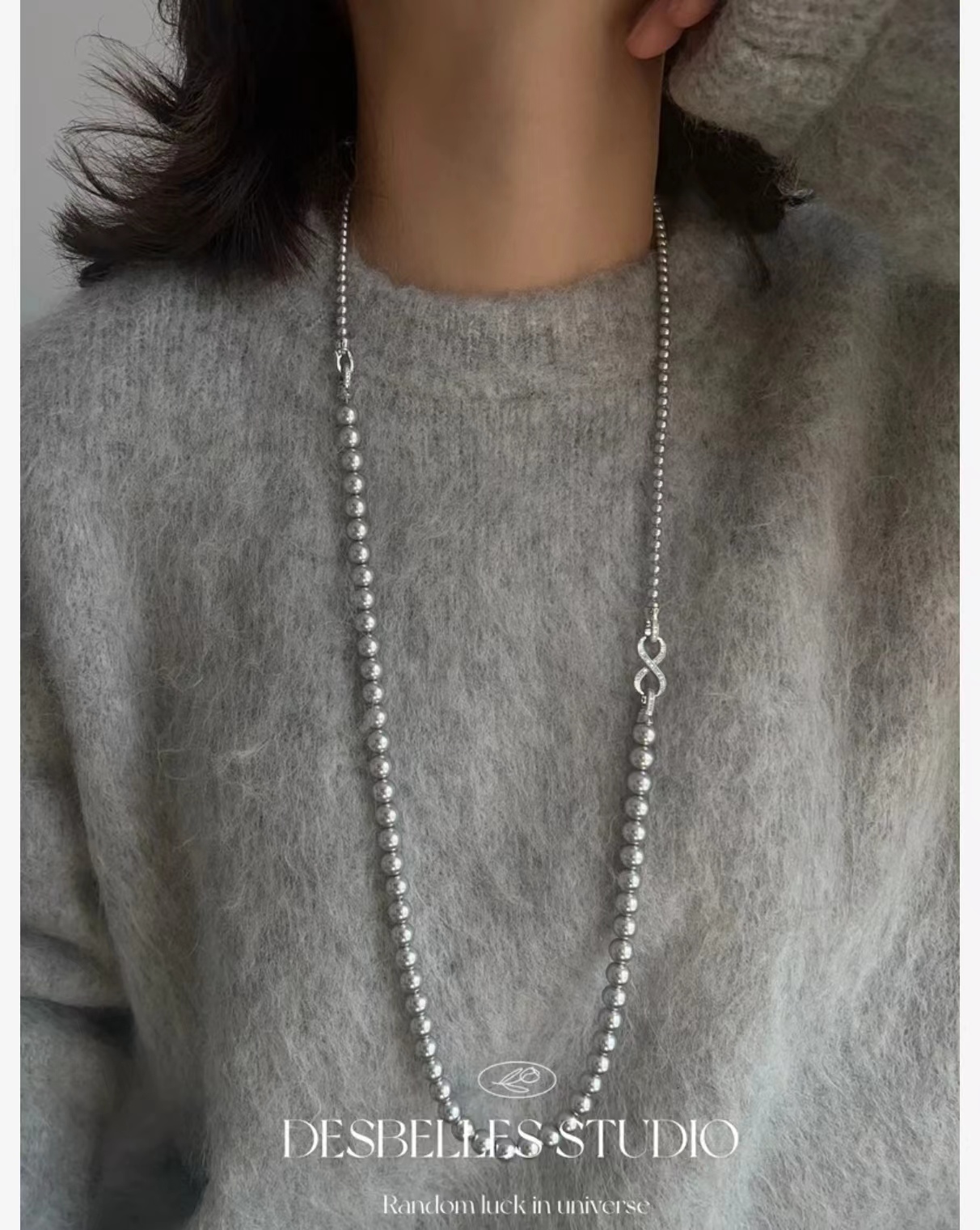 轻松解锁六种戴法,有这一条,一年四季的钟情款。镶钻莫比乌斯8字环+施华洛姆贝粉合成珍珠 澳白的平替,尺寸:4mm+8mm,提前说明,两种8字扣头咱随机发全钻扣头成本要geng高点,单独佩戴时也感觉geng出众。灰色少,实在分不到全钻也就单钻了哈~总之都好看。我跟厂家商量也是尽力给咱全钻!
