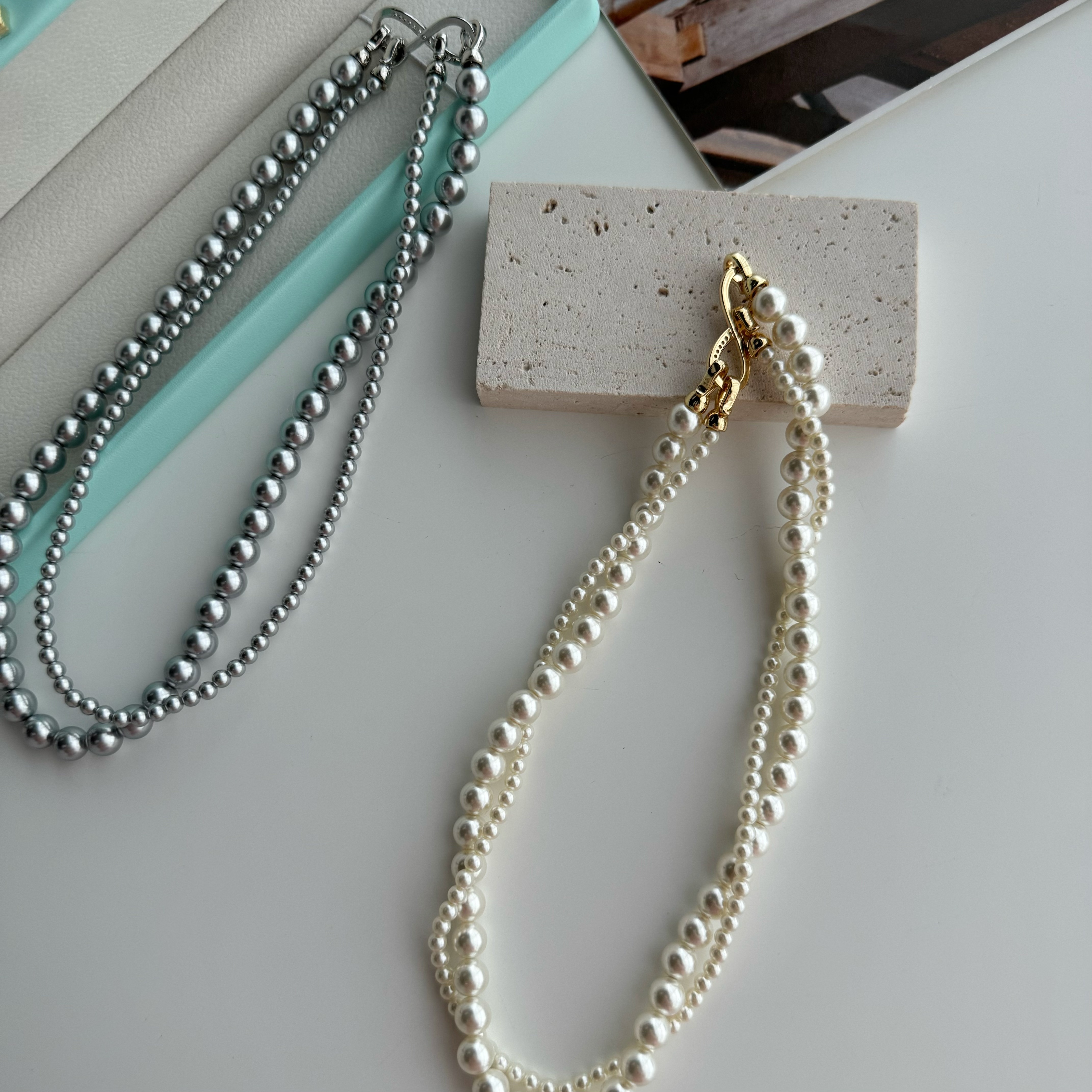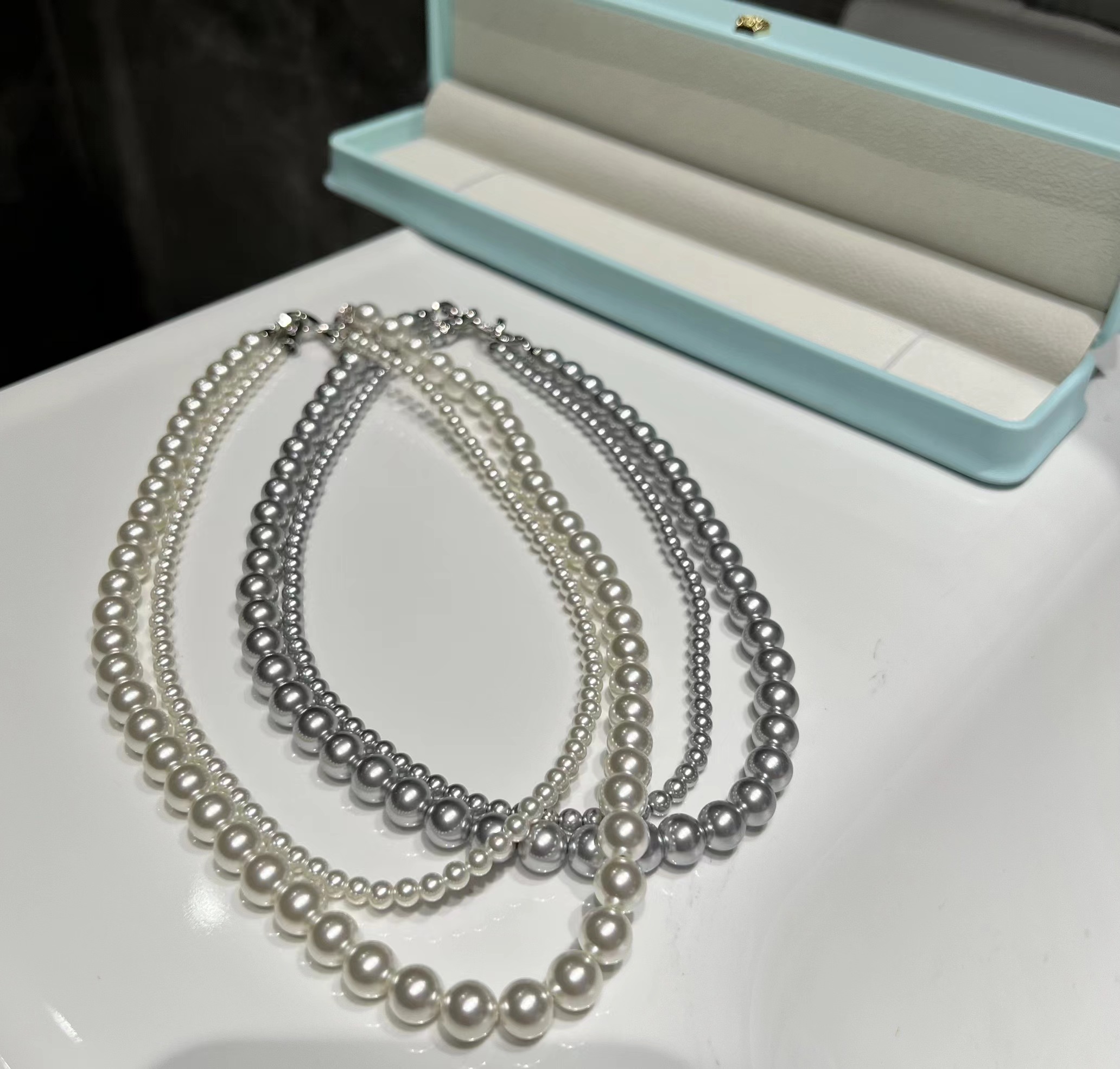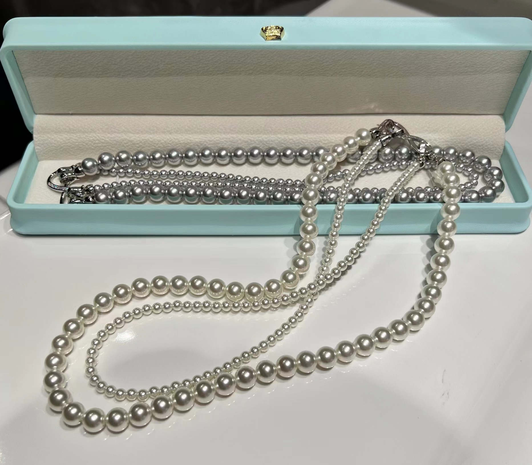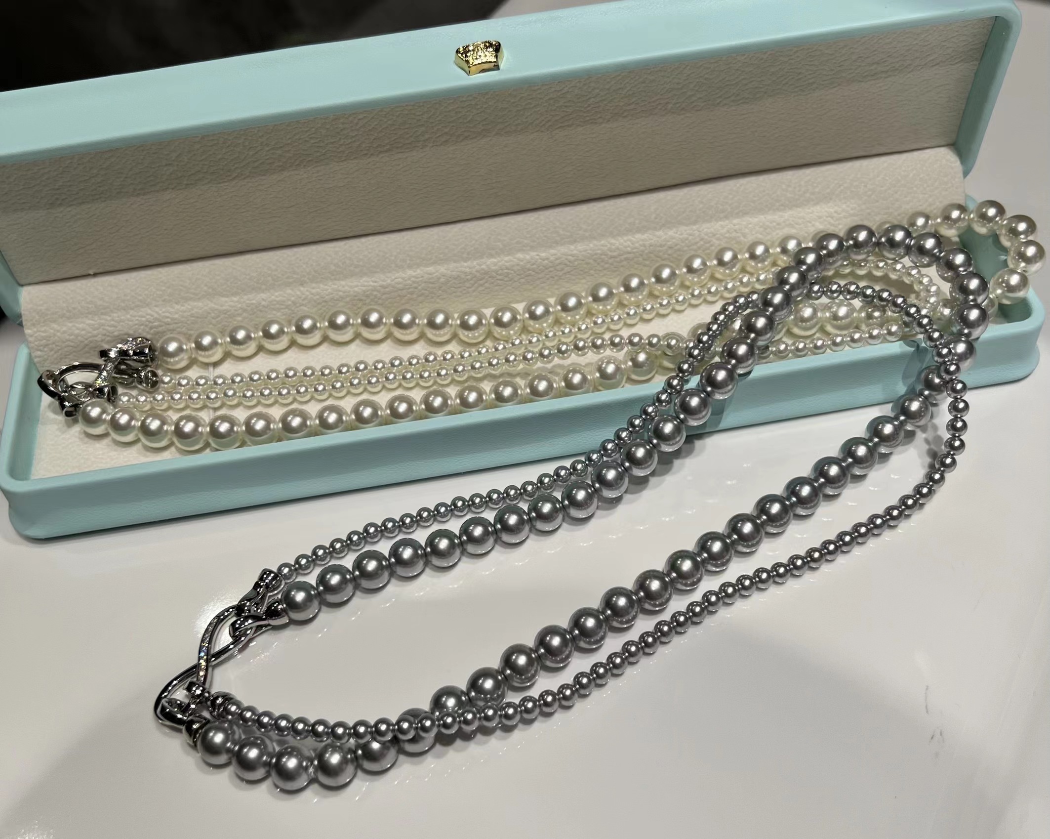 轻松解锁六种戴法,有这一条,一年四季的钟情款。镶钻莫比乌斯8字环+施华洛姆贝粉合成珍珠 澳白的平替,尺寸:4mm+8mm,提前说明,两种8字扣头咱随机发全钻扣头成本要geng高点,单独佩戴时也感觉geng出众。灰色少,实在分不到全钻也就单钻了哈~总之都好看。我跟厂家商量也是尽力给咱全钻!