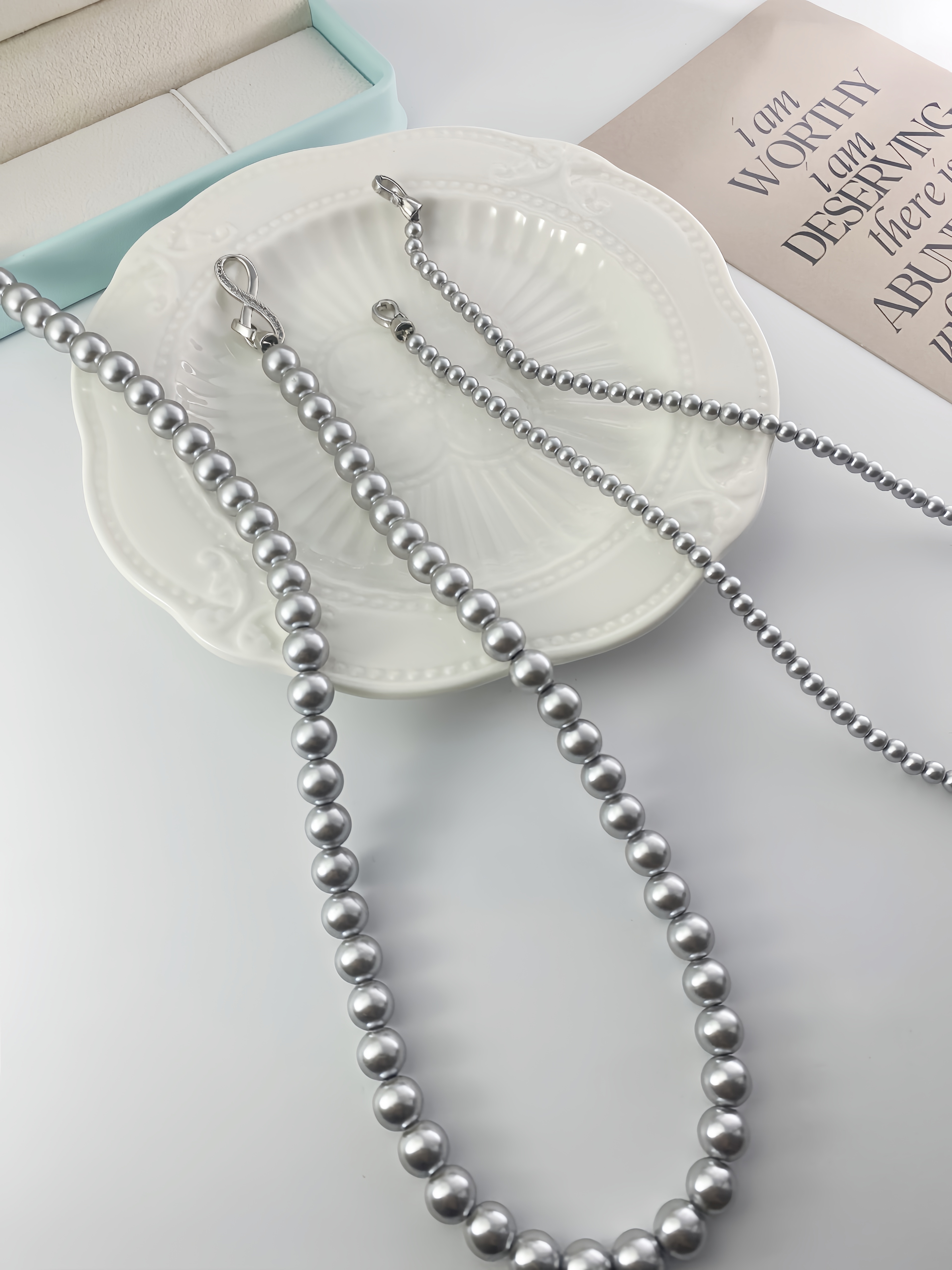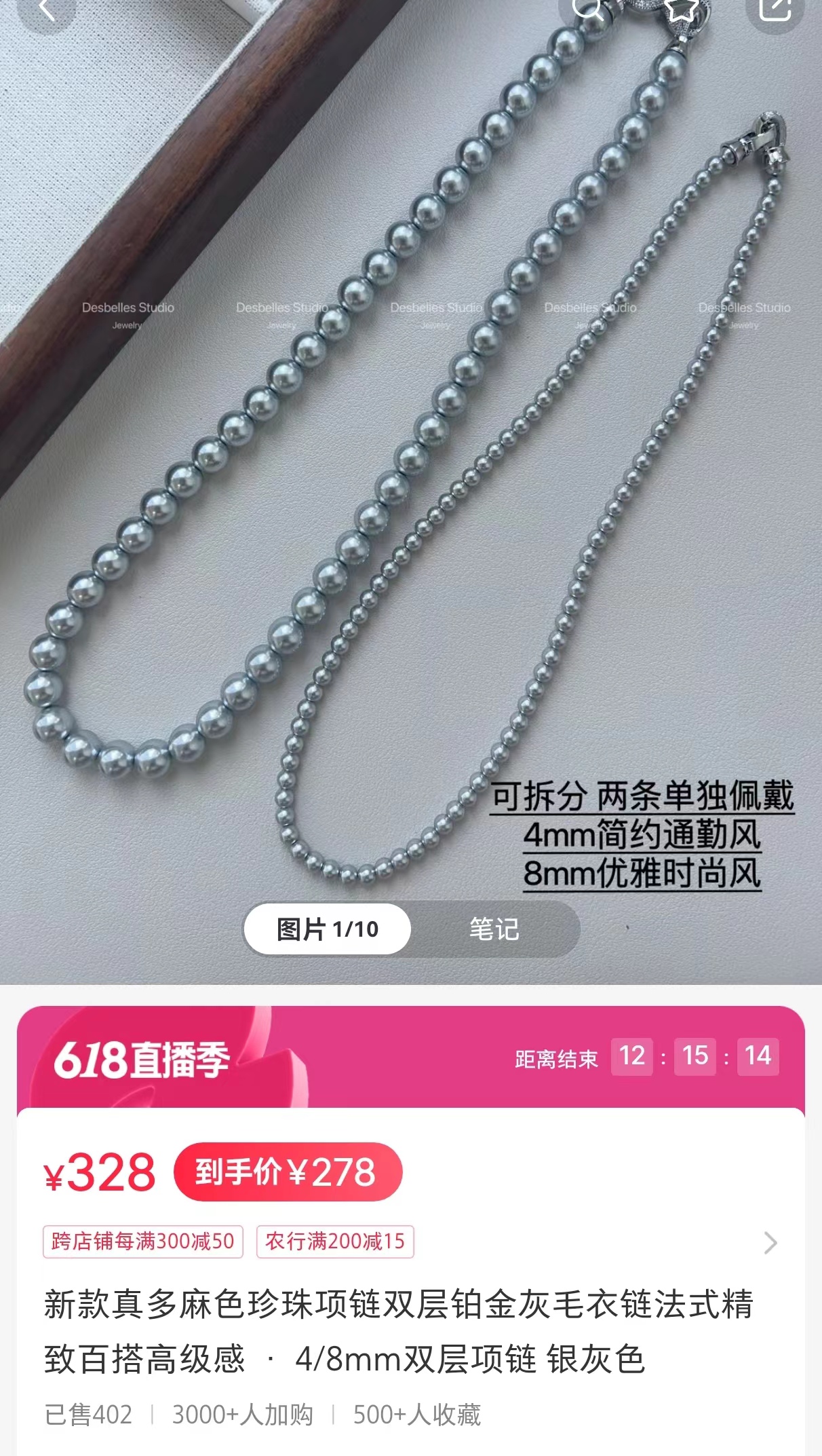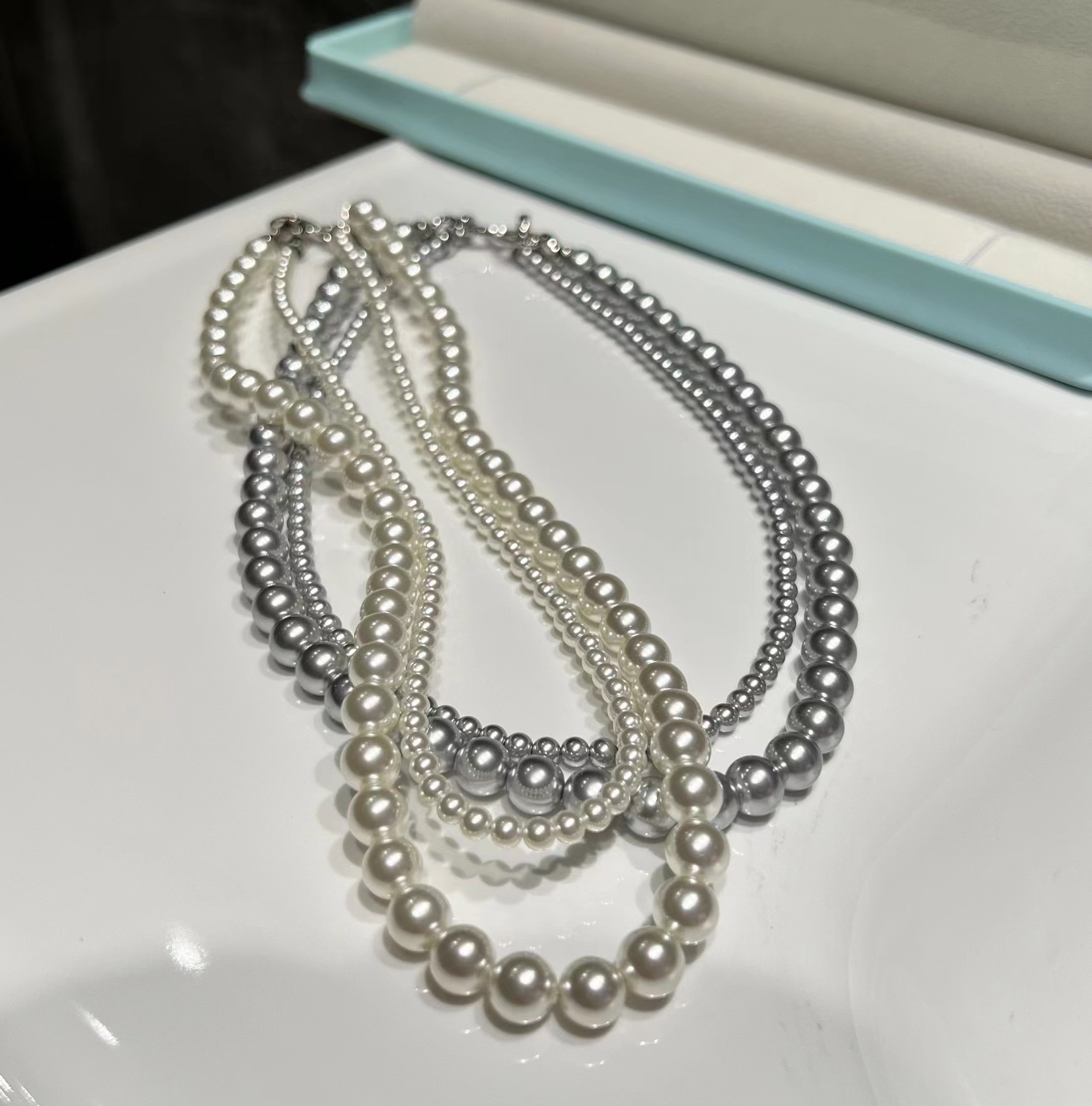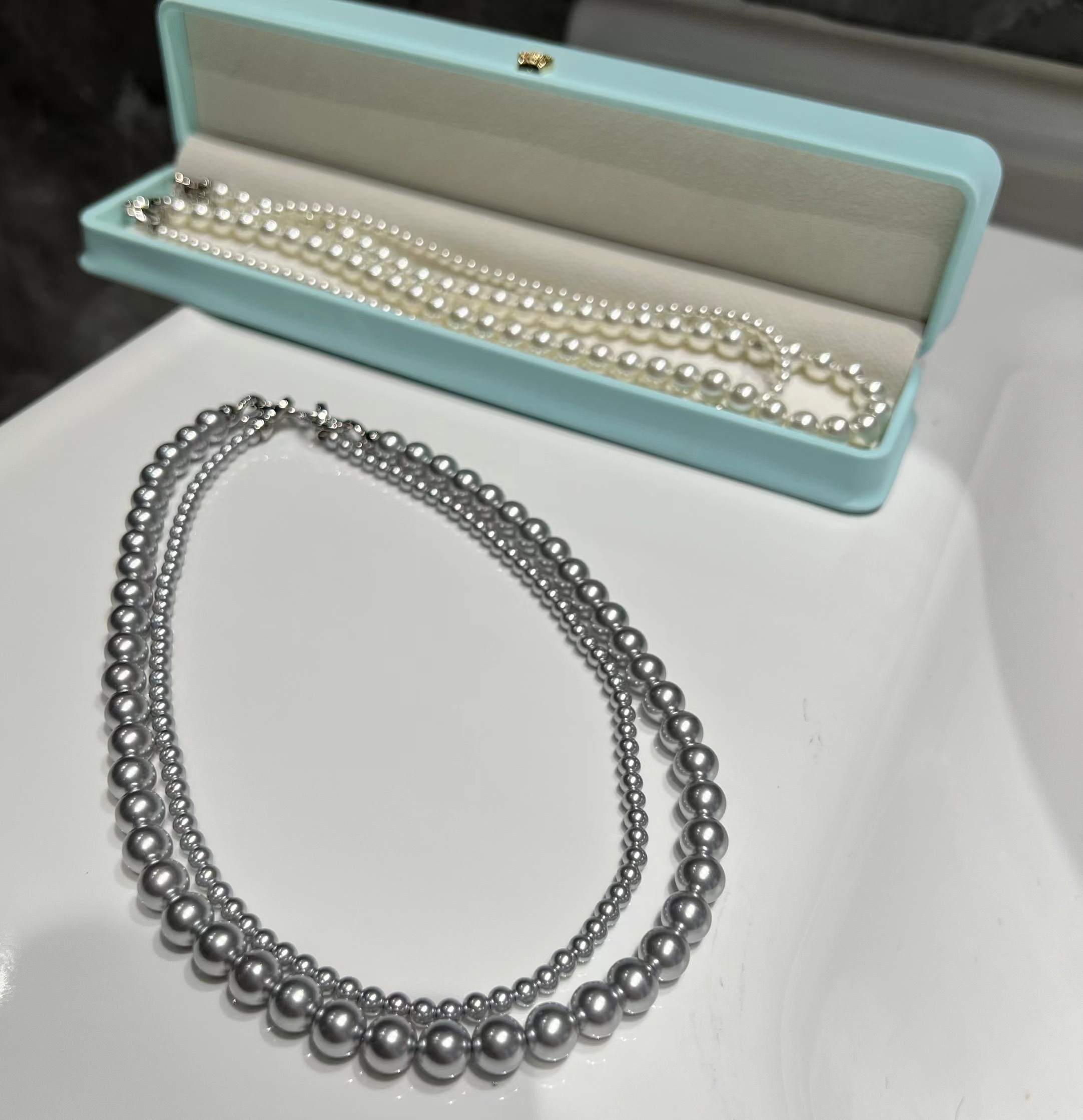 轻松解锁六种戴法,有这一条,一年四季的钟情款。镶钻莫比乌斯8字环+施华洛姆贝粉合成珍珠 澳白的平替,尺寸:4mm+8mm,提前说明,两种8字扣头咱随机发全钻扣头成本要geng高点,单独佩戴时也感觉geng出众。灰色少,实在分不到全钻也就单钻了哈~总之都好看。我跟厂家商量也是尽力给咱全钻!