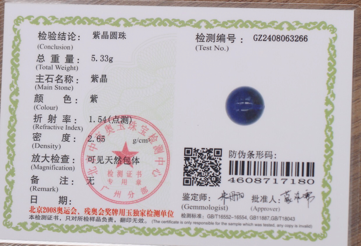 【锦欢】紫水晶圆珠项链 (不含金链)