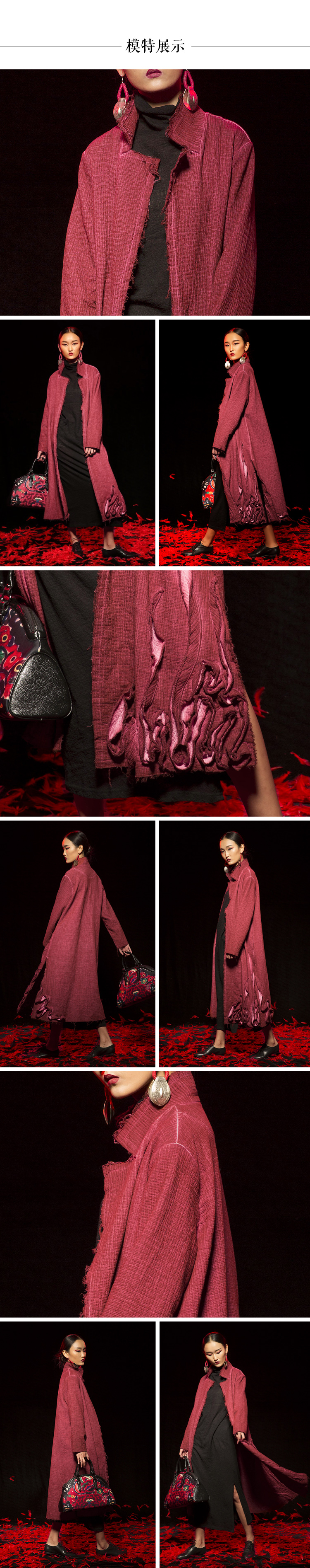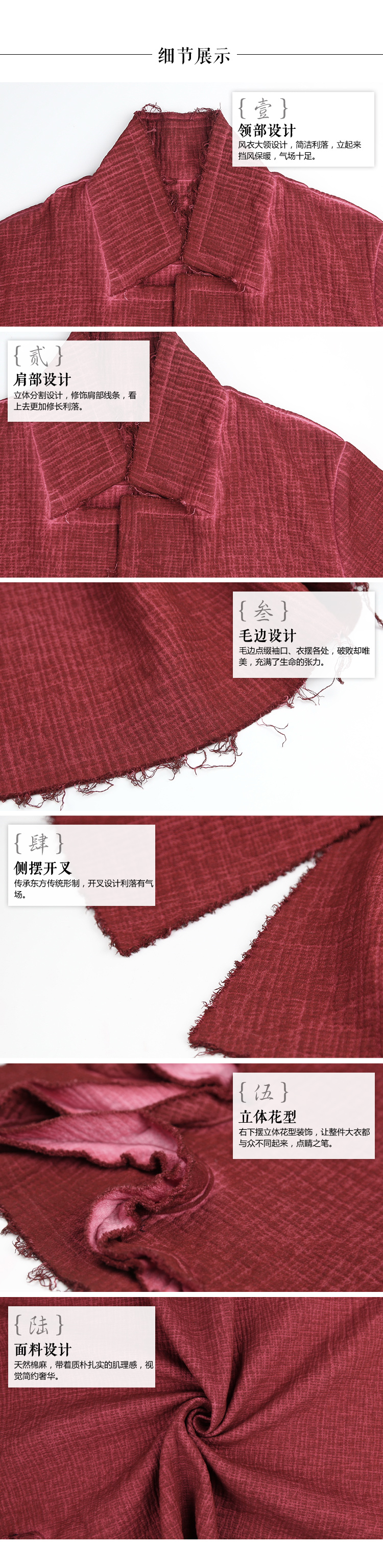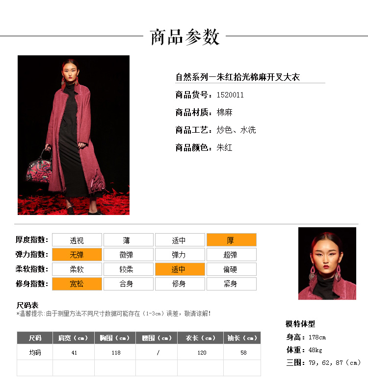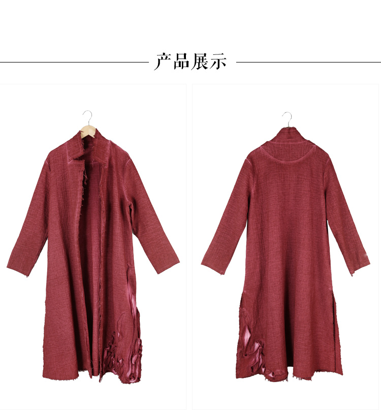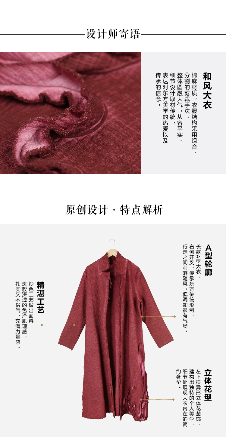 【朱红拾光棉麻开叉大衣】