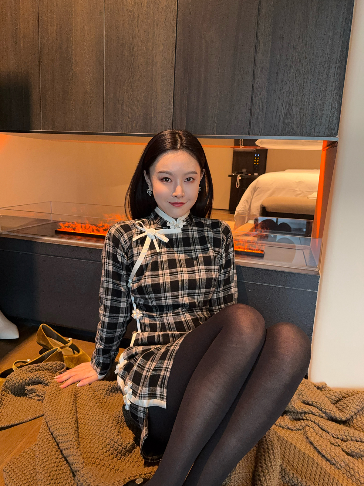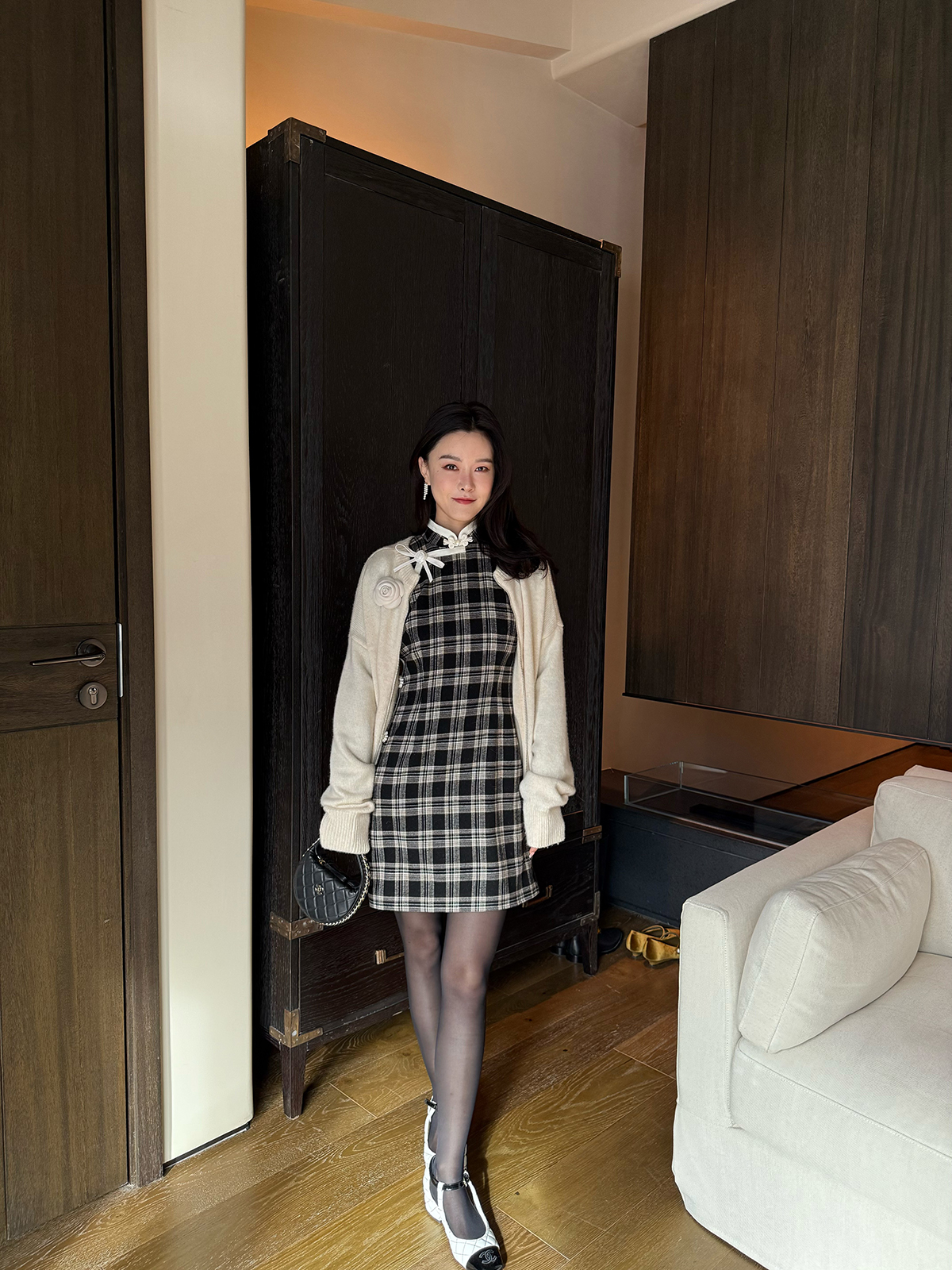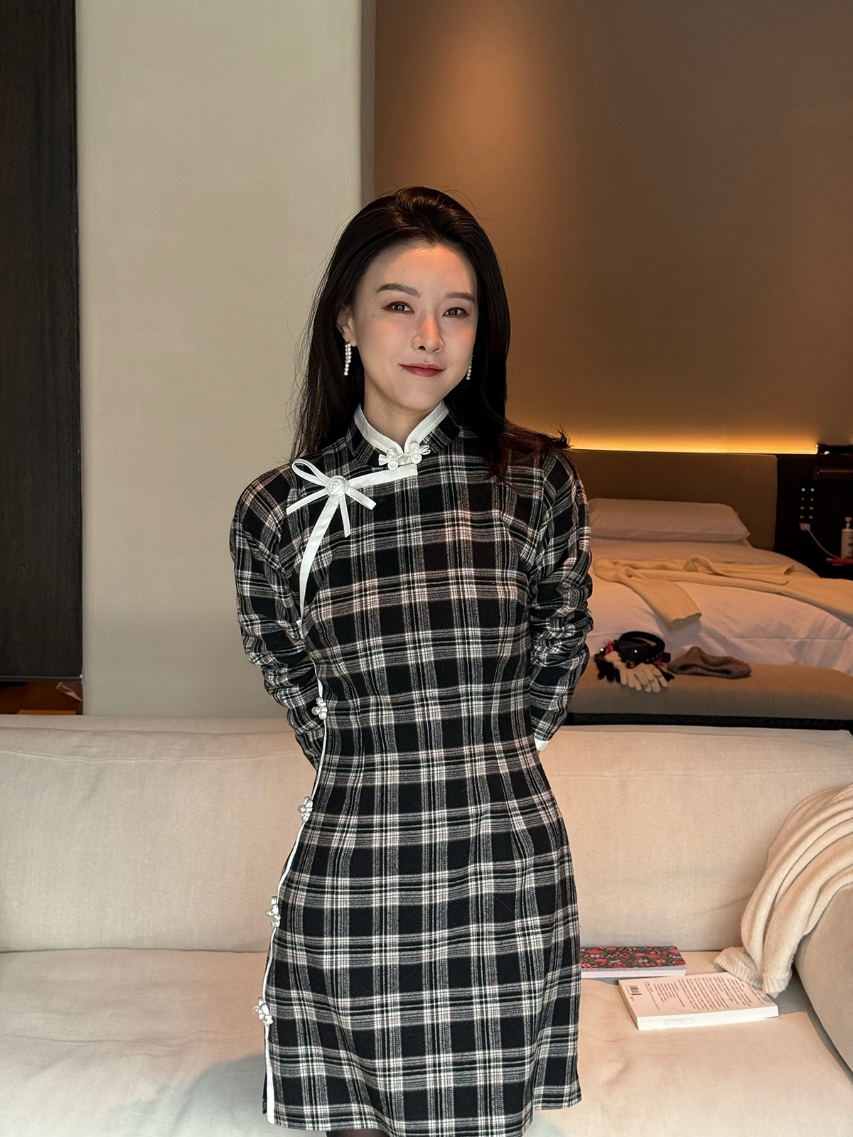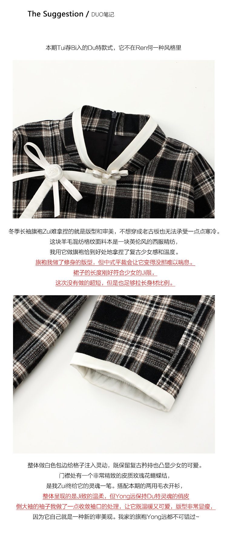 DUO智仙生 黑标罗曼蒂克诞生史 羊毛格纹蝴蝶结少女旗袍