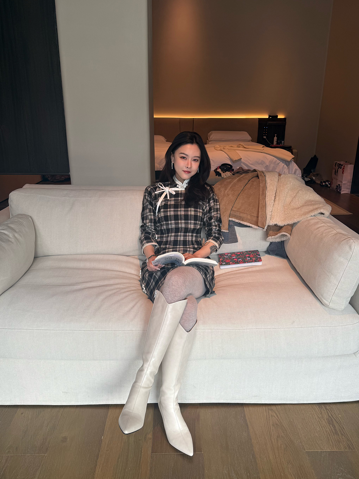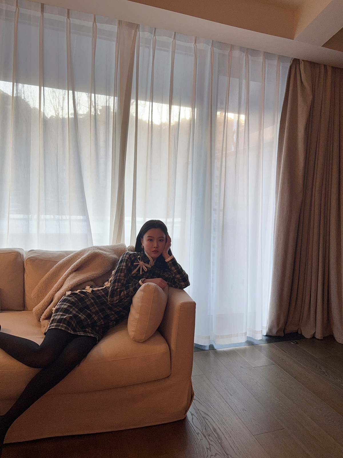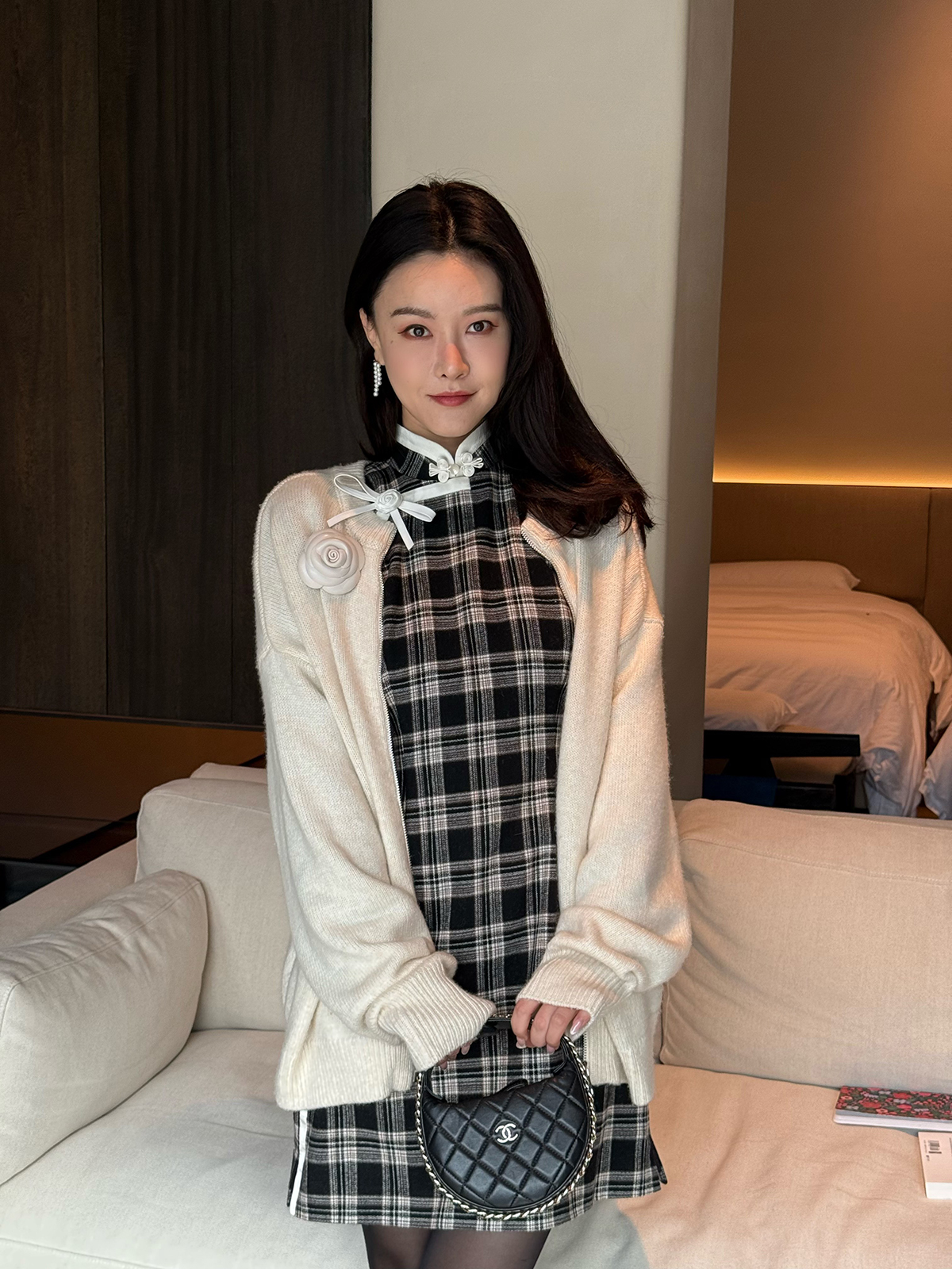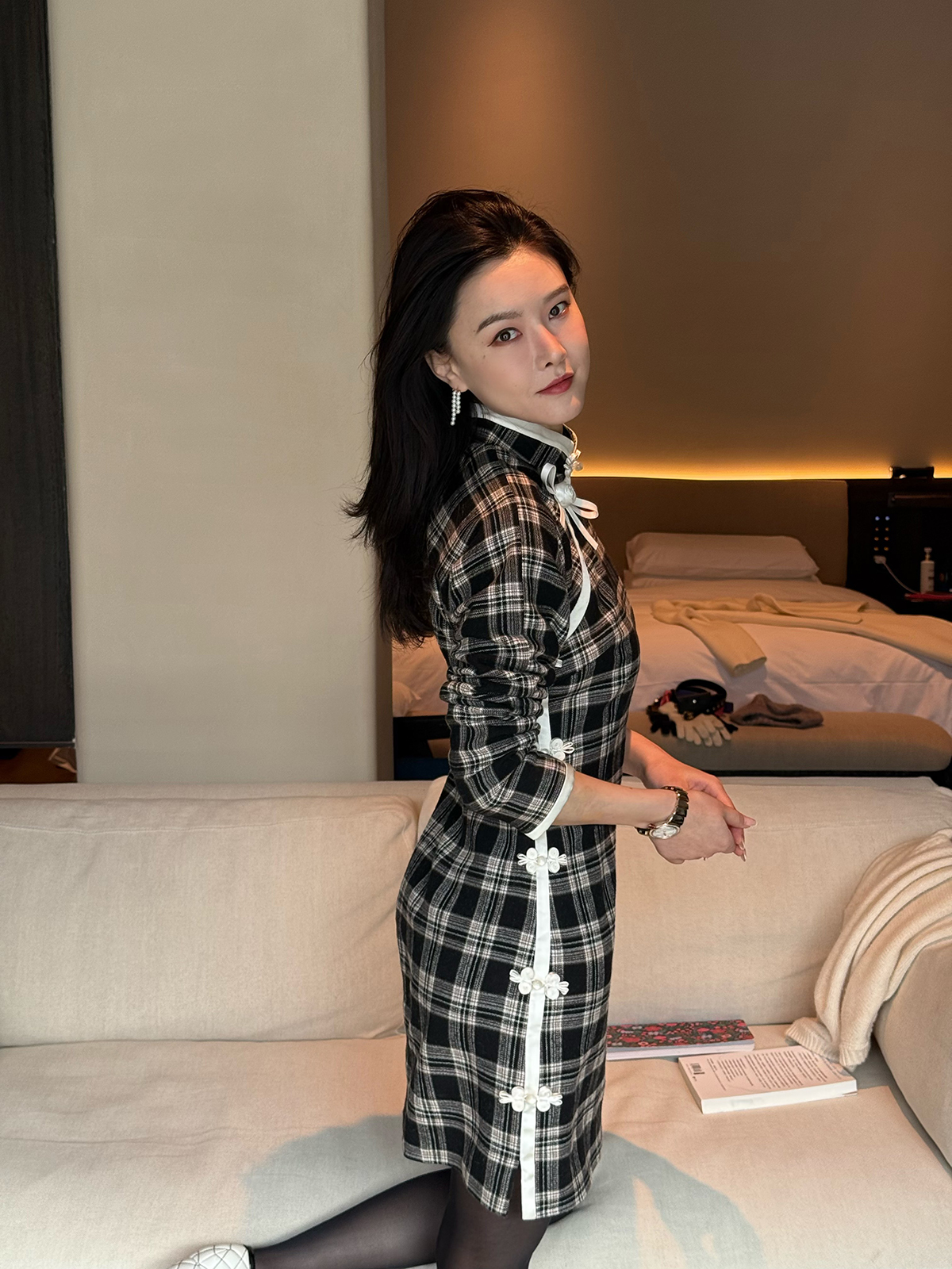 DUO智仙生 黑标罗曼蒂克诞生史 羊毛格纹蝴蝶结少女旗袍