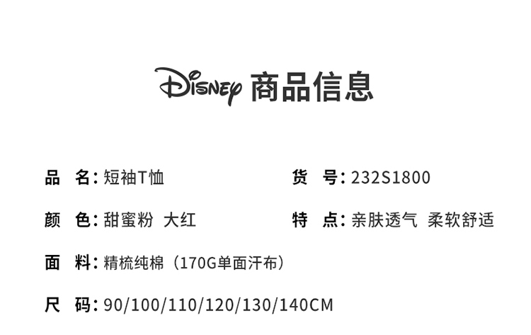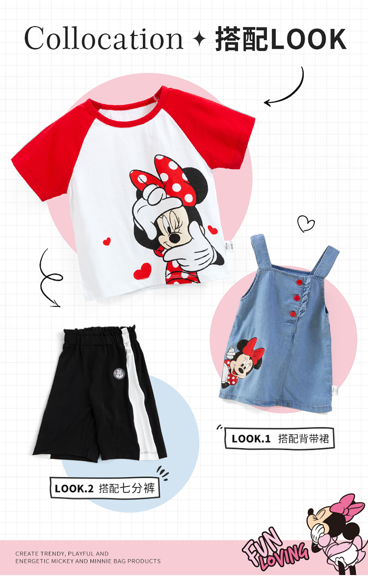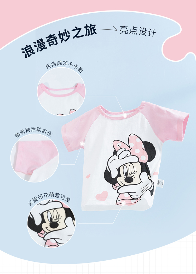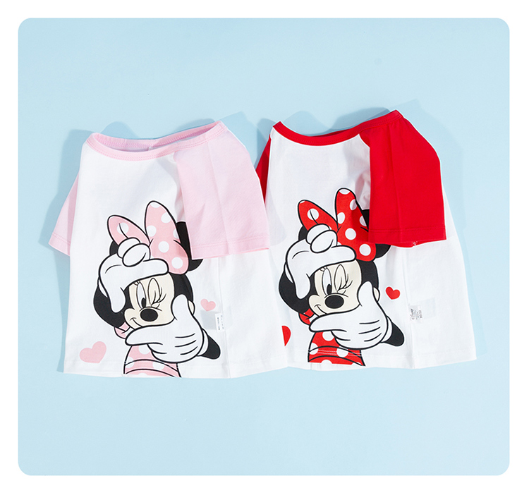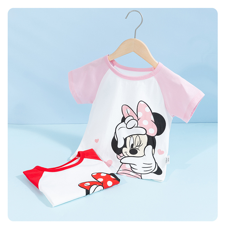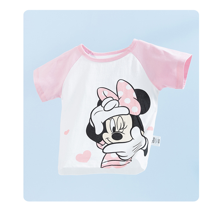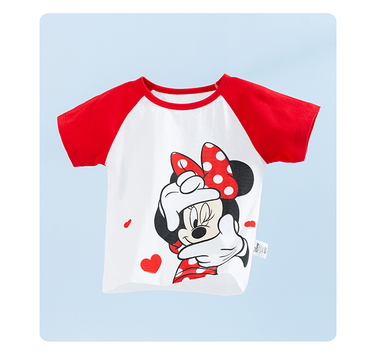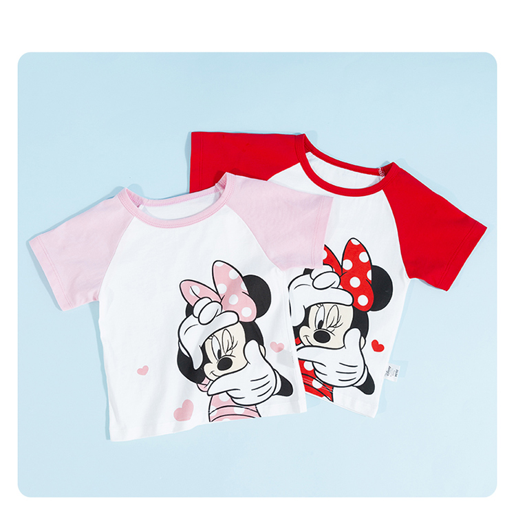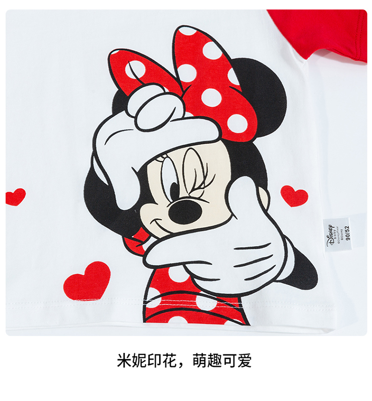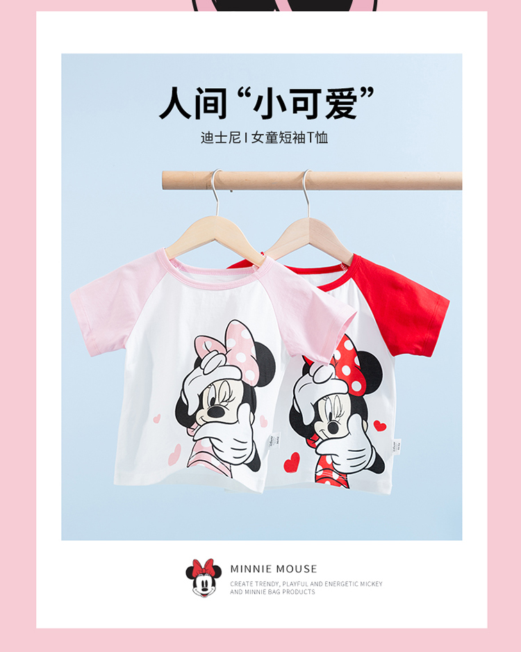 迪士尼童装女童纯棉短袖T恤夏季新品可爱米妮洋气中小童卡通印花T
