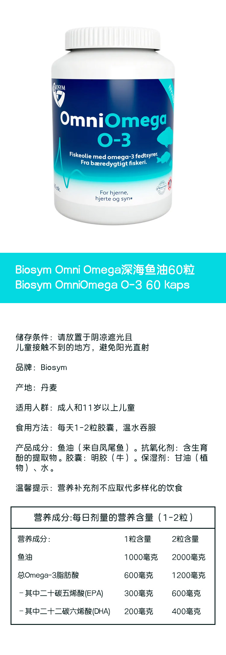 [极速送达-FX]Biosym Omni Omega深海鱼油60粒. Biosym OmniOmega O-3 60 kaps.