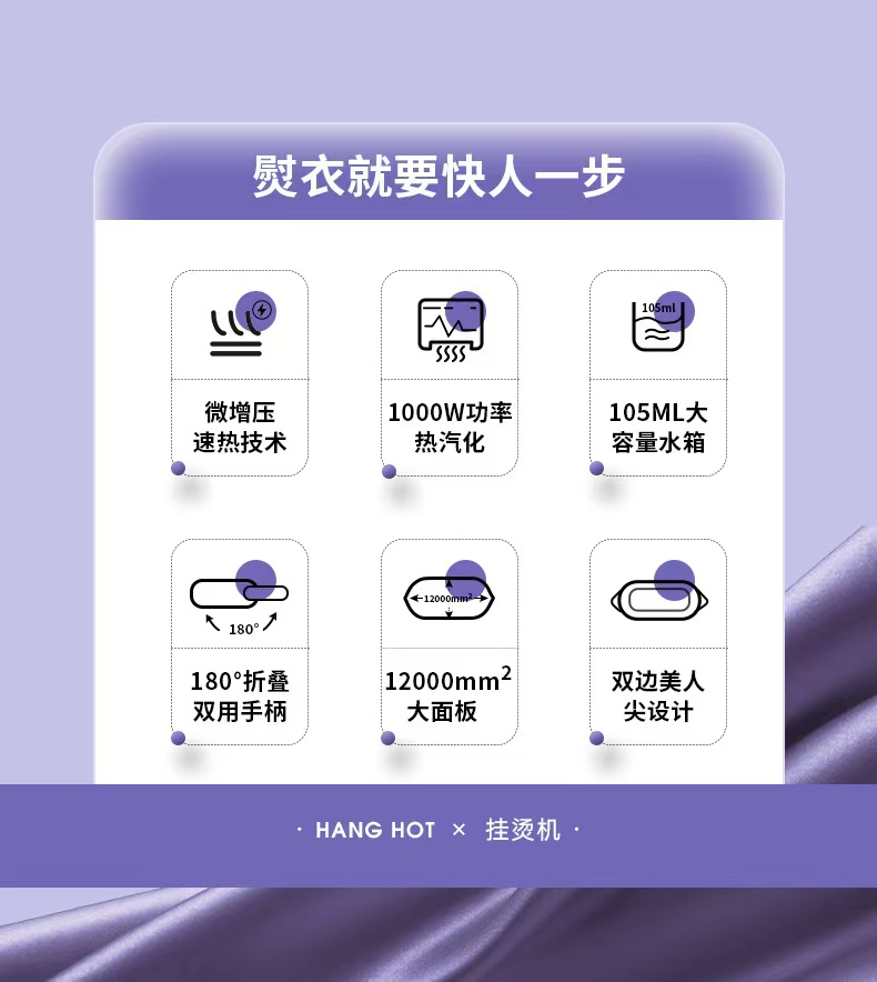 顺滑不勾丝,拓宽熨烫面积,节约约50%时间