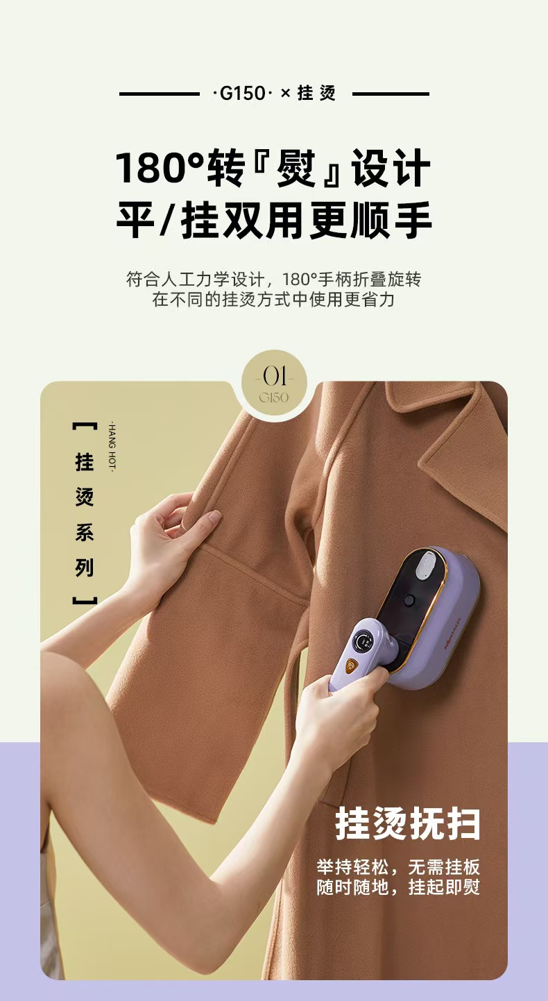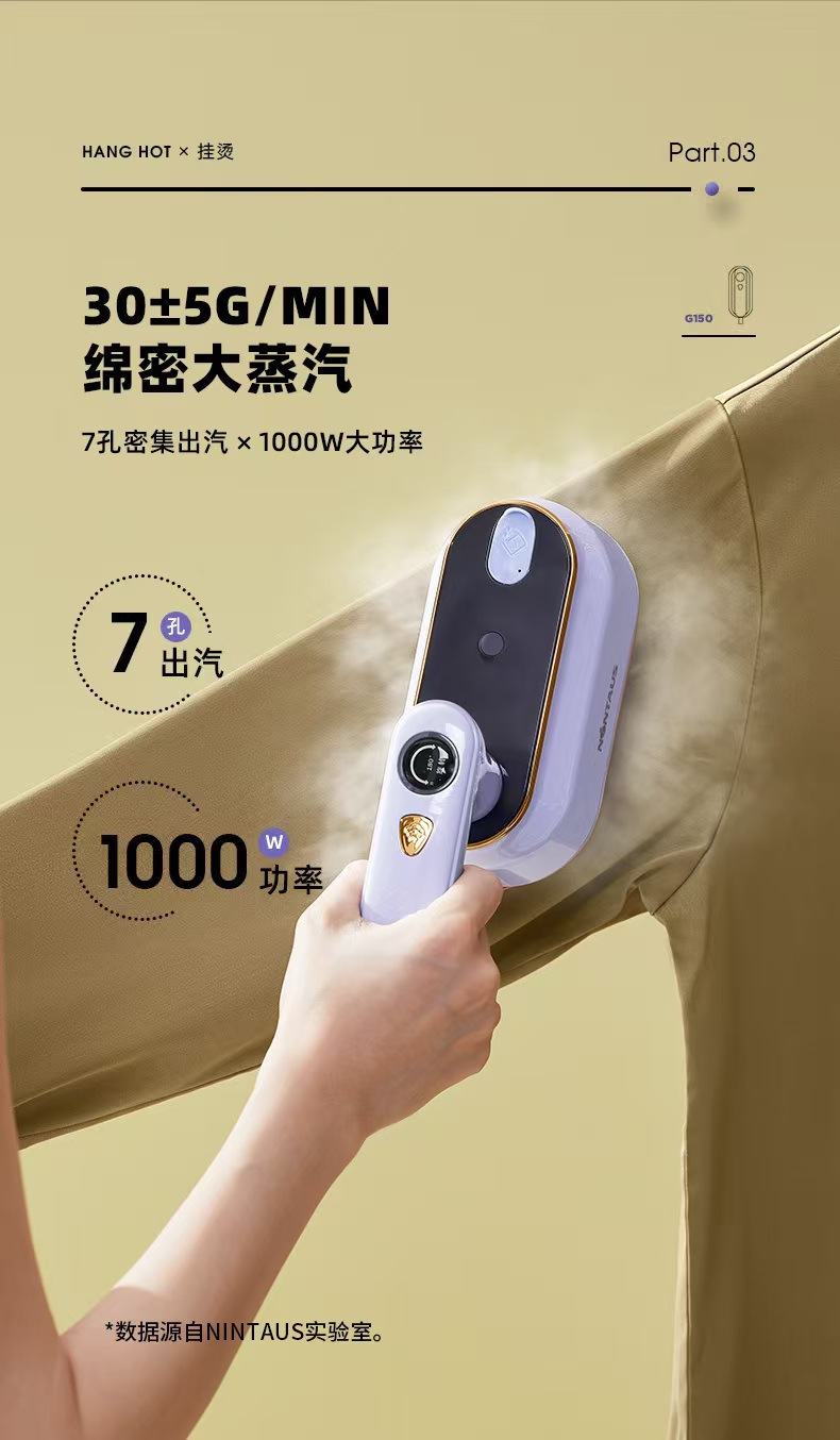 澎湃蒸汽强劲穿透衣物,快速定型除皱~