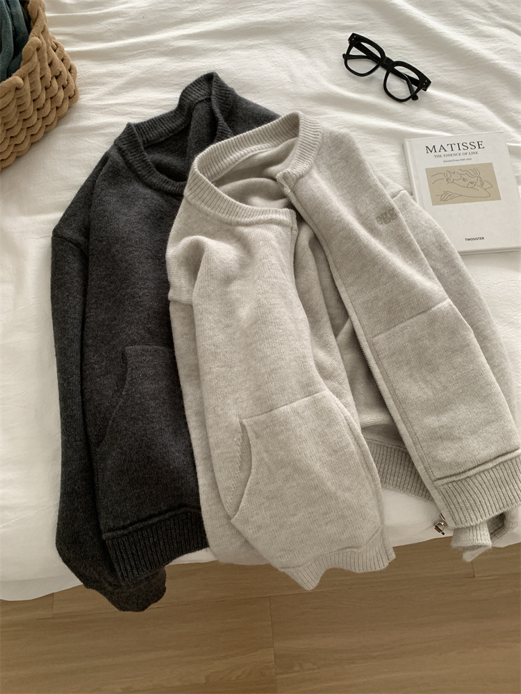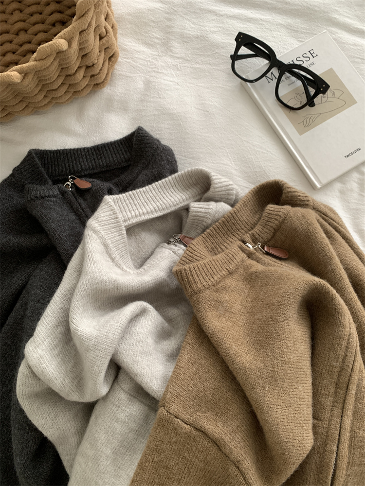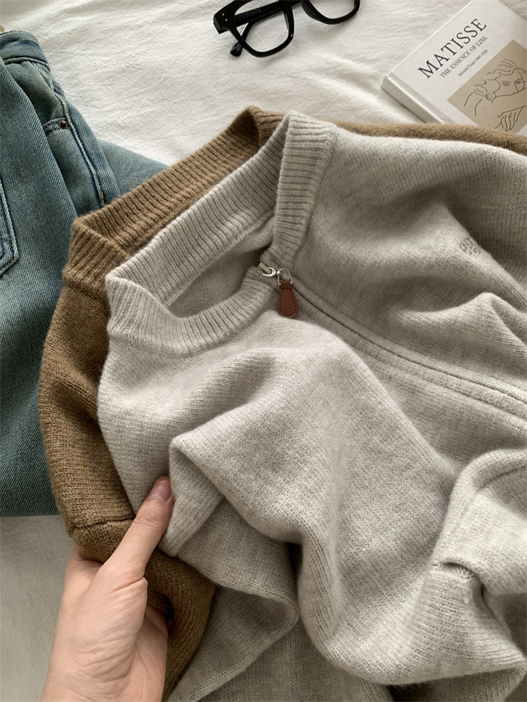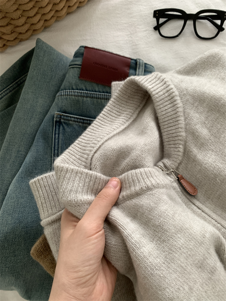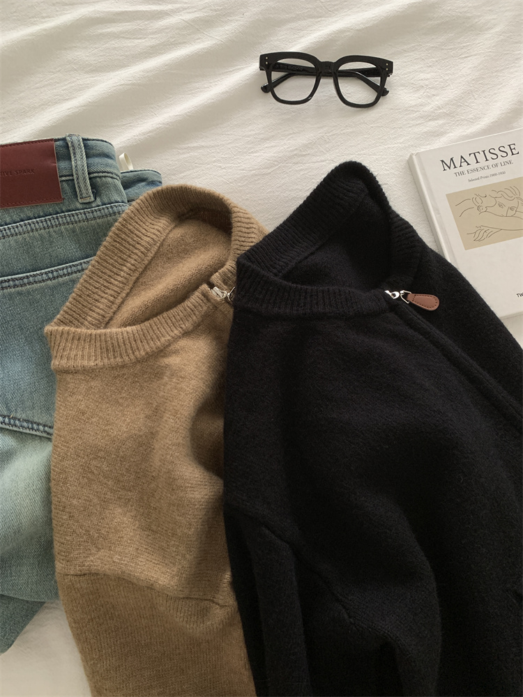 紧密厚实拉链衫!女款气质通勤慵懒垂感百搭圆领针织开衫秋冬毛衣外套!