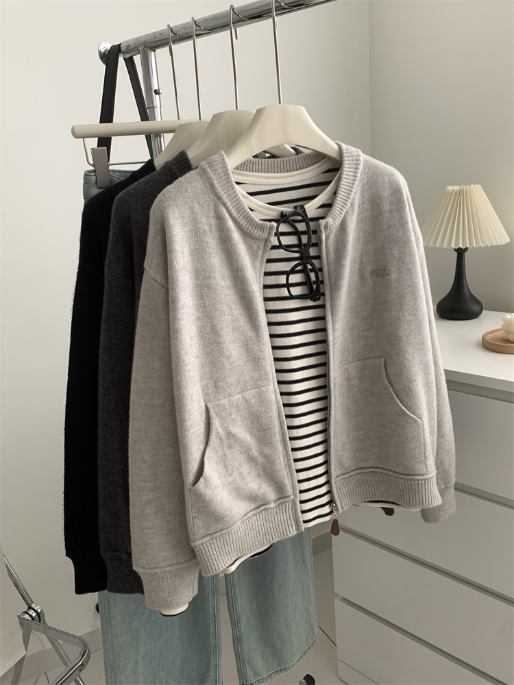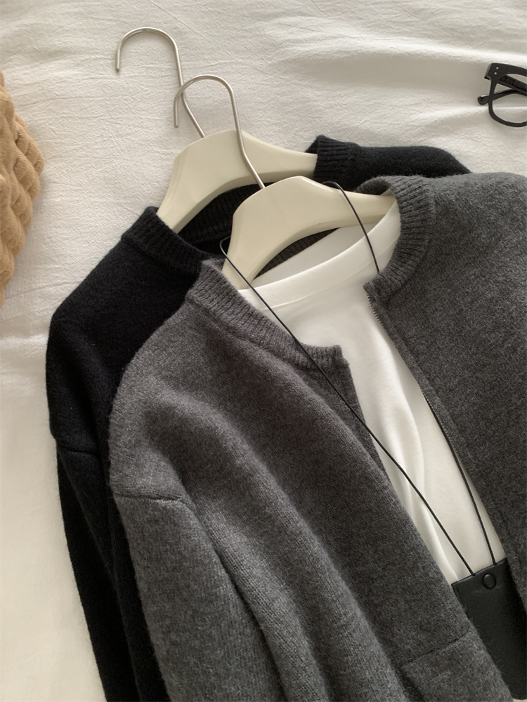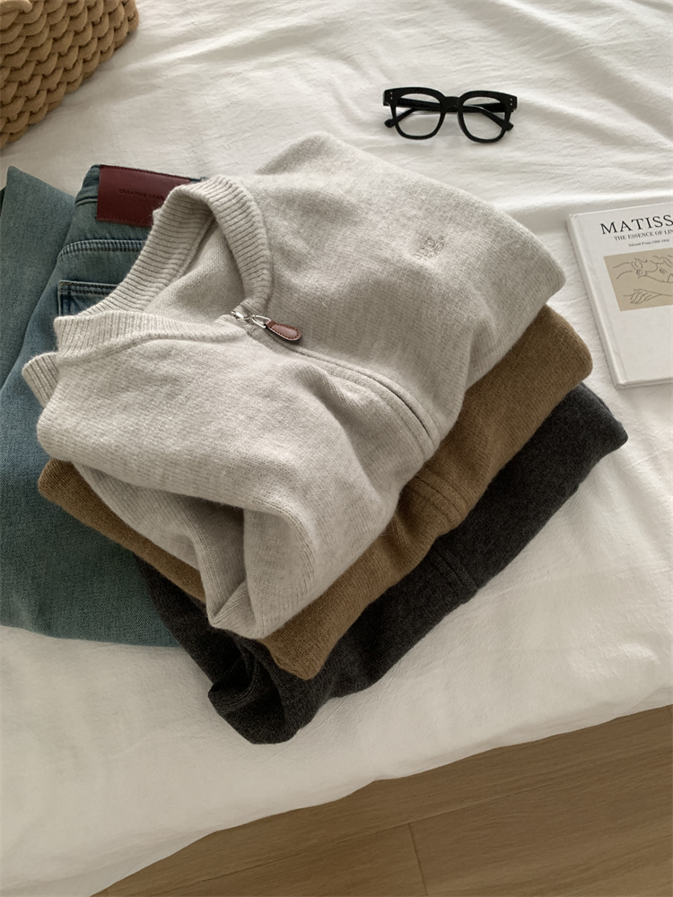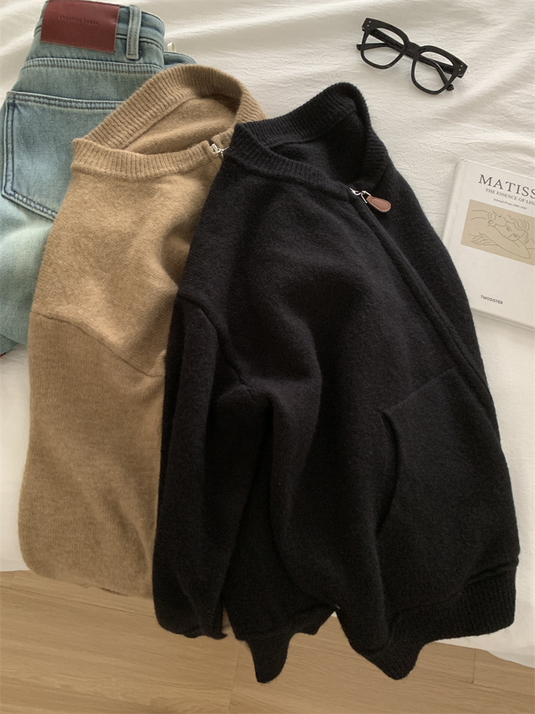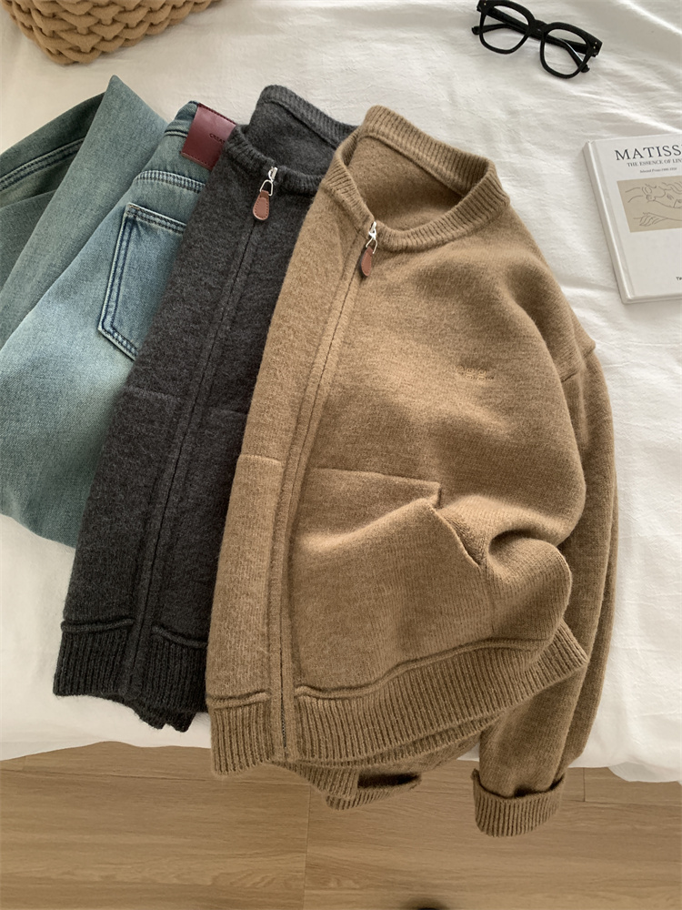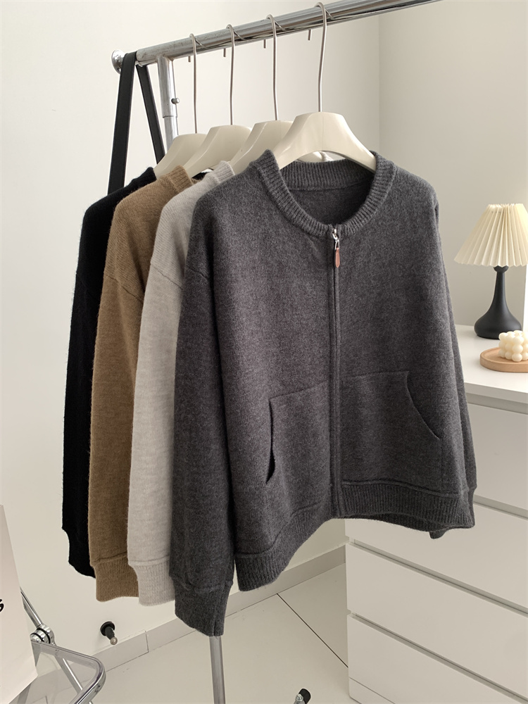 紧密厚实拉链衫!女款气质通勤慵懒垂感百搭圆领针织开衫秋冬毛衣外套!