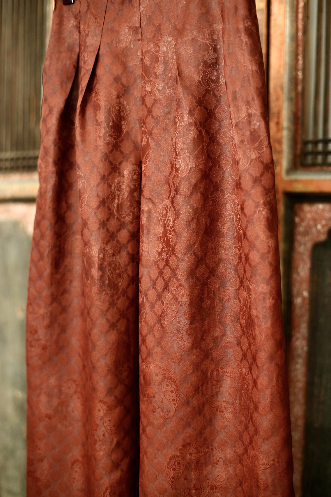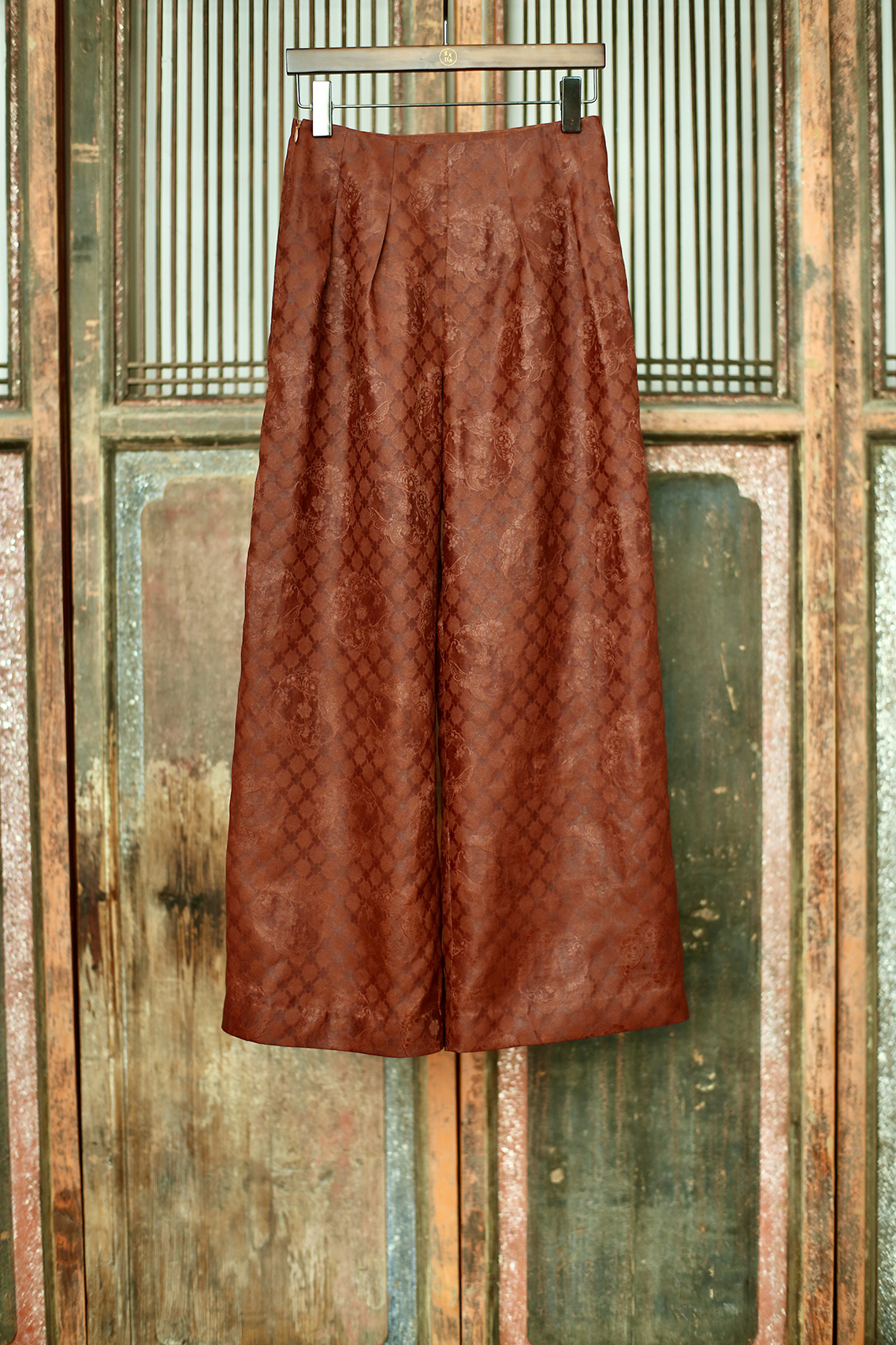 盛唐牡丹 | 重缎罗底红云纱阔腿裤