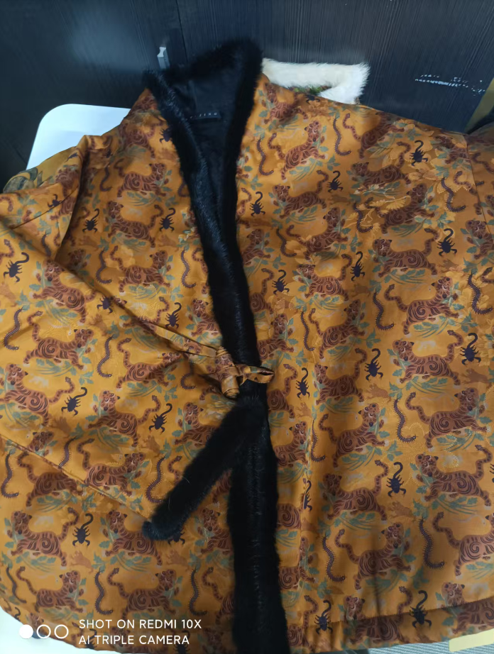 盛唐婧 | 重缎香云纱虎镇五毒水貂落肩外套