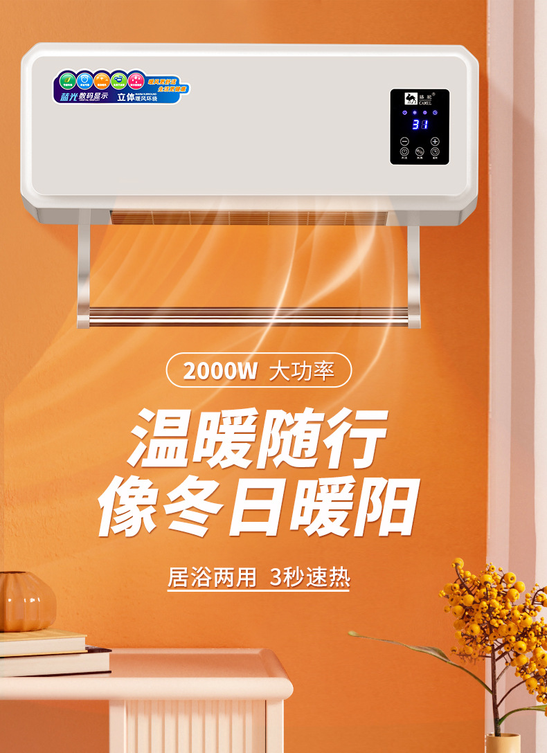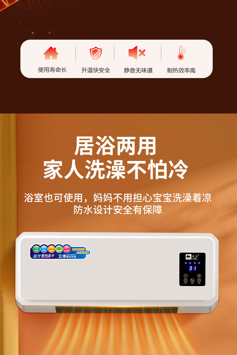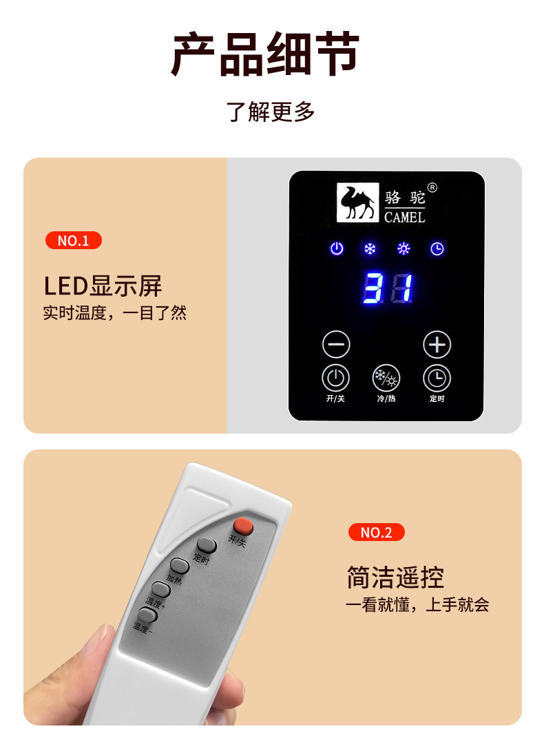 【居浴两用,骆驼移动空调】骆驼移动空调冷暖两用取暖器,即开即热,防水防潮,快速升温,安全温暖两兼得,暖风机家用壁挂式移动小空调节能电暖QQ