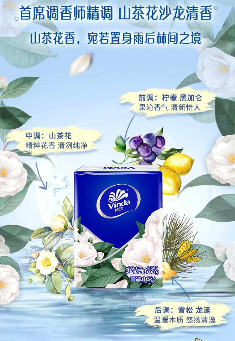 维达山茶花香印花超韧手帕纸纸巾便携小包纸巾随身装面巾纸餐巾纸