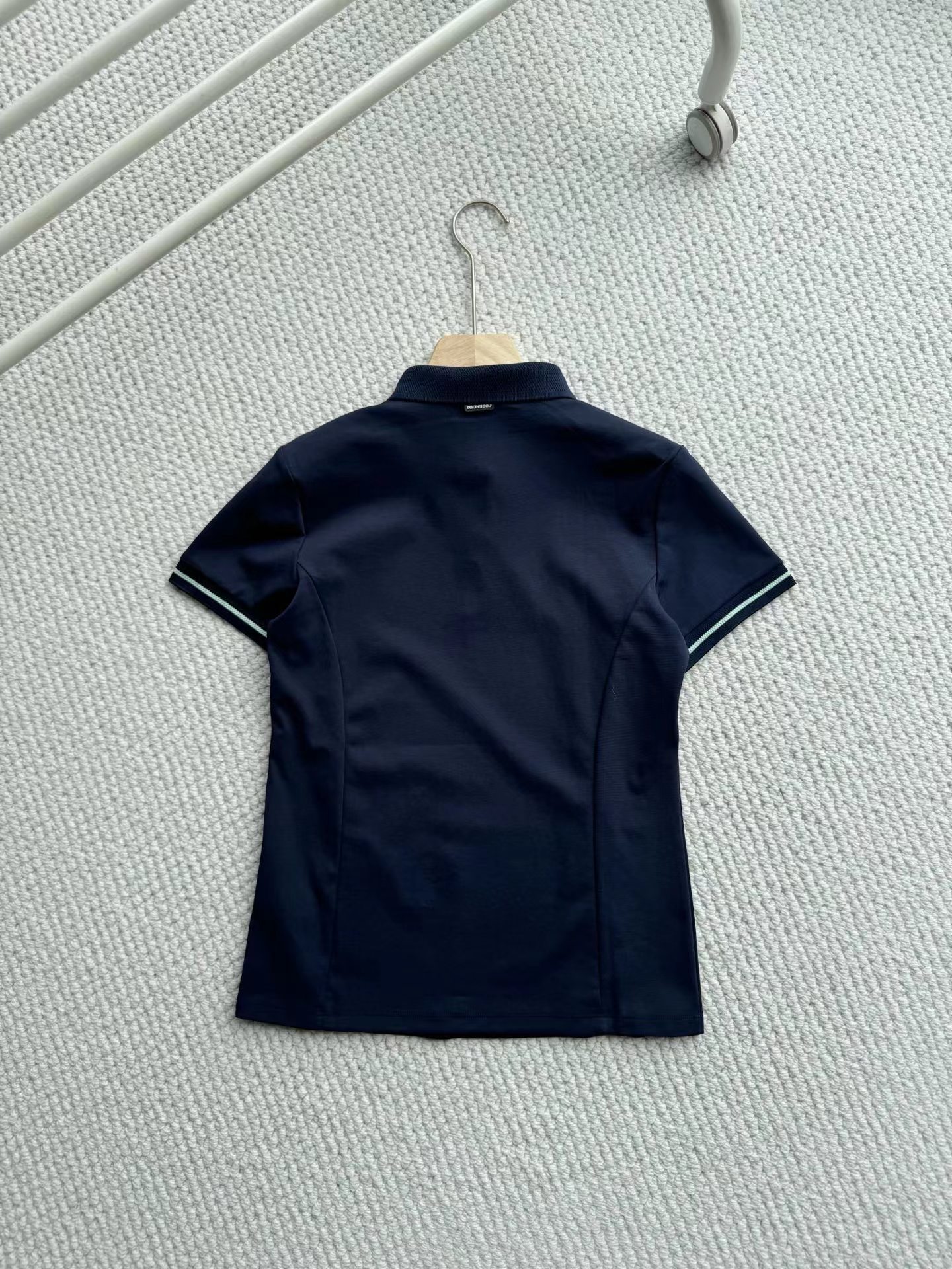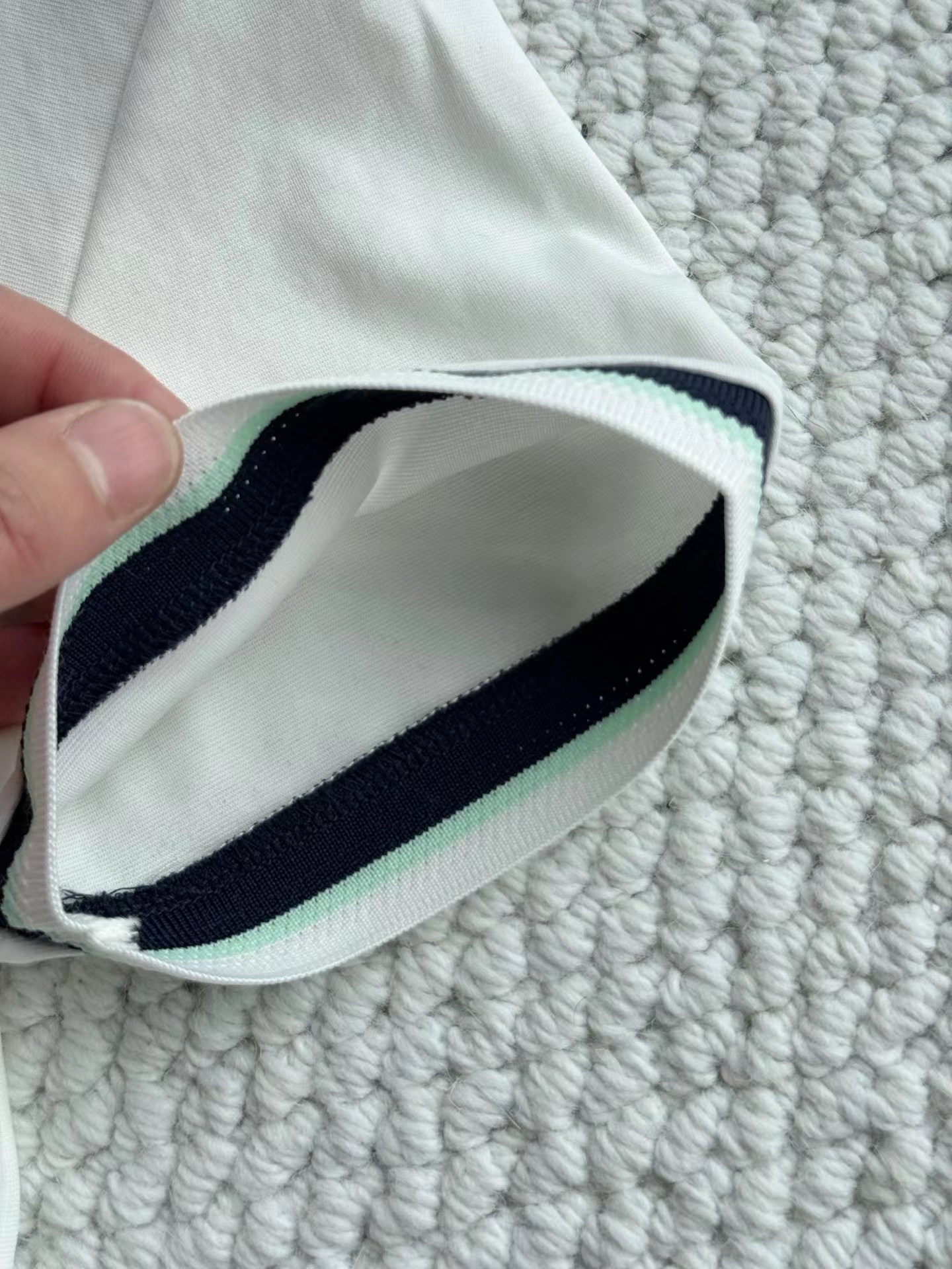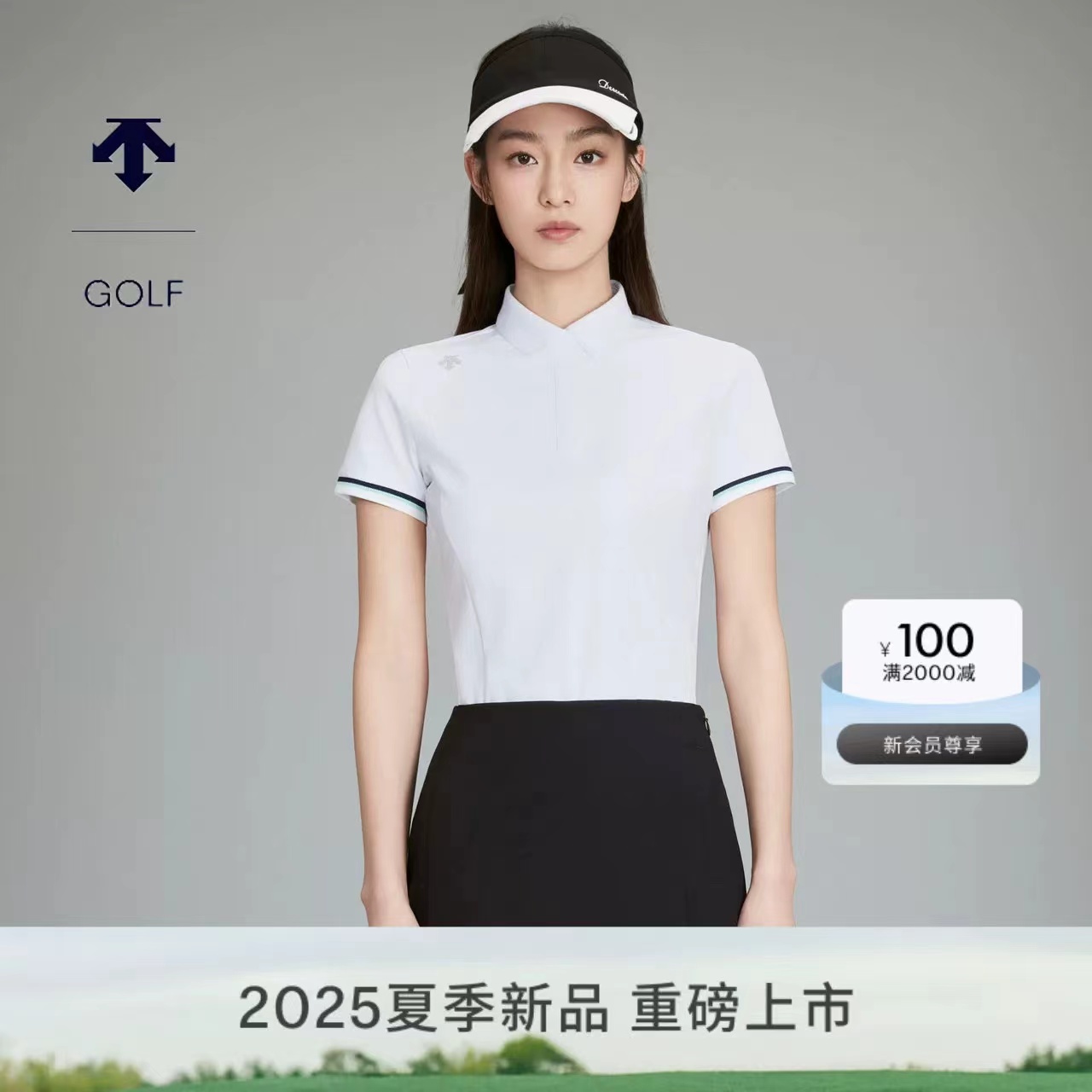 高尔夫FIELD女士防晒修身短袖POLO衫 简约质感,轻松驾驭春夏球场,使用精典Carvico针纺梭面料制成的短袖POLO衫。面料轻质挺阔,平整顺滑,抗皱的同时具有UPF50+抗紫外线功能性。袖口的撞色提织装饰,小巧秀气,细节设计感凸显。领口和袖口的提花工艺,确保花纹立体感的同时保持抗皱、耐磨性。立体剪裁设计,贴合女性身材曲线,兼顾运动灵活性与优雅线条,避免传统POLO衫的臃肿感,偏运动剪裁,若追求宽松效果可考虑大一码。