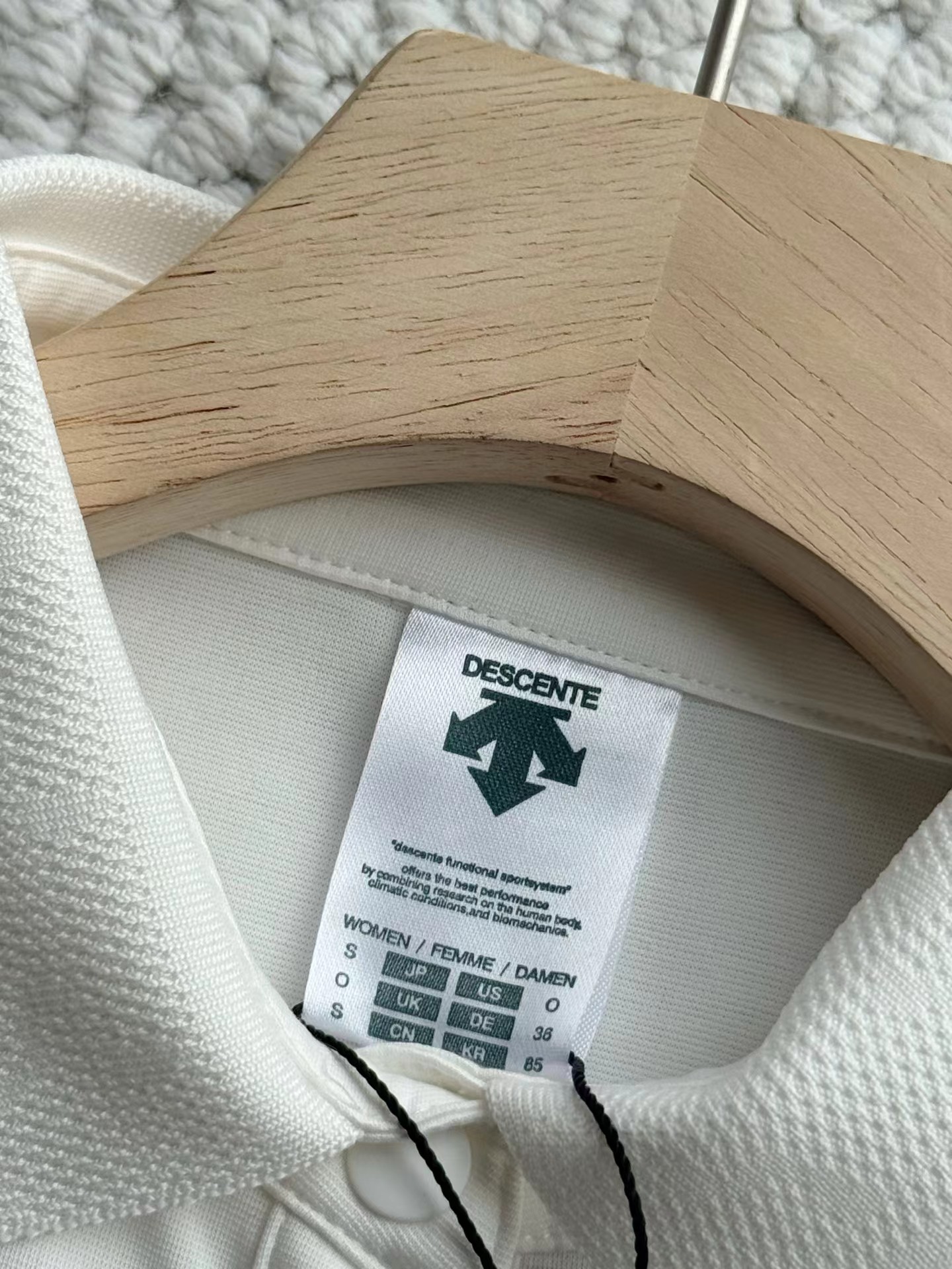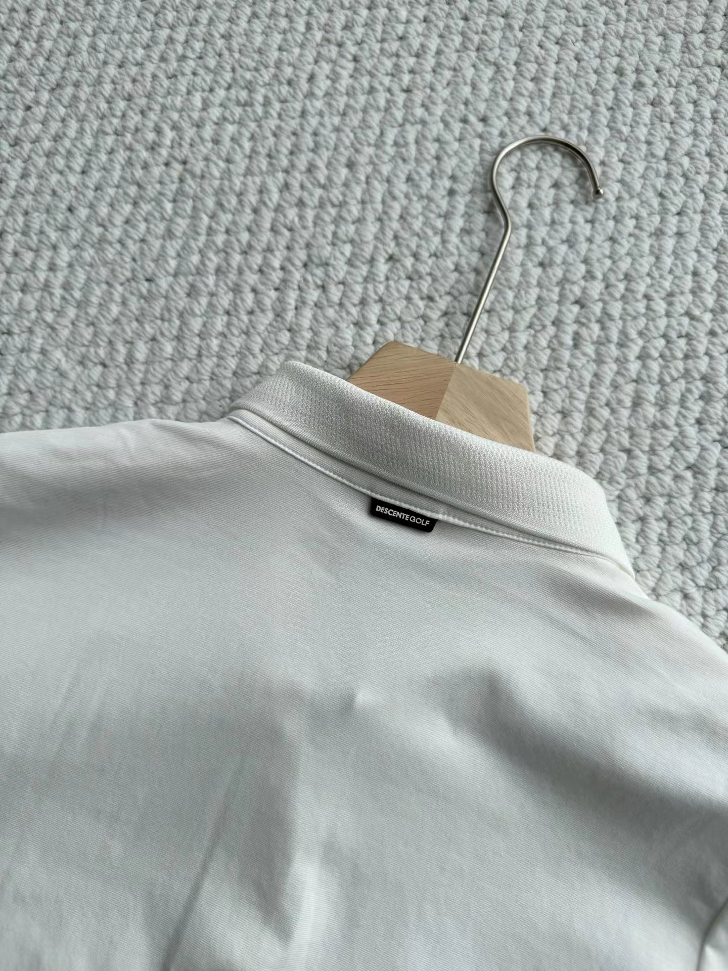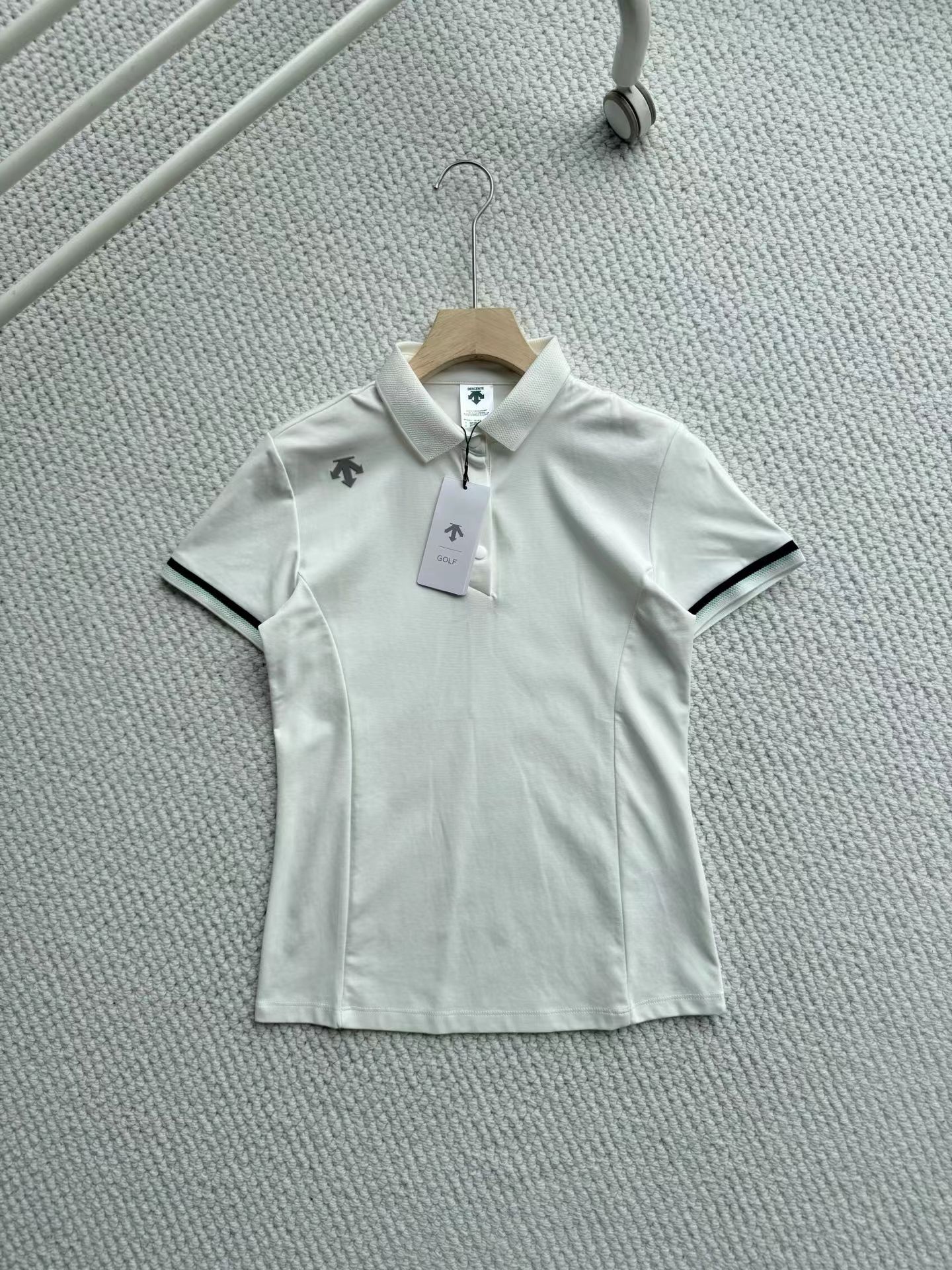 高尔夫FIELD女士防晒修身短袖POLO衫 简约质感,轻松驾驭春夏球场,使用精典Carvico针纺梭面料制成的短袖POLO衫。面料轻质挺阔,平整顺滑,抗皱的同时具有UPF50+抗紫外线功能性。袖口的撞色提织装饰,小巧秀气,细节设计感凸显。领口和袖口的提花工艺,确保花纹立体感的同时保持抗皱、耐磨性。立体剪裁设计,贴合女性身材曲线,兼顾运动灵活性与优雅线条,避免传统POLO衫的臃肿感,偏运动剪裁,若追求宽松效果可考虑大一码。