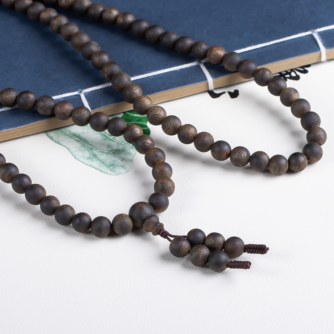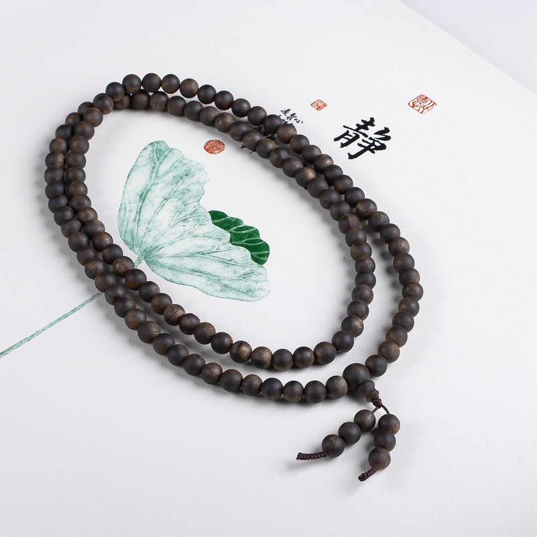 xy0647【沉水级】8.5mm沉香108佛珠项链,天然奇楠沉香,37克+,108颗,原色原味,香味自然清甜。沉水级品质,油脂结实醇厚丰满,成色均匀上佳,非常难得的一手料子配成108佛珠,佩戴豪华大气,清香徐徐,舒适舒压,摆脱烦扰,平静心灵。无论佩戴还是收藏,都非常值得。