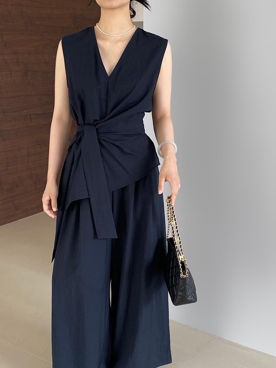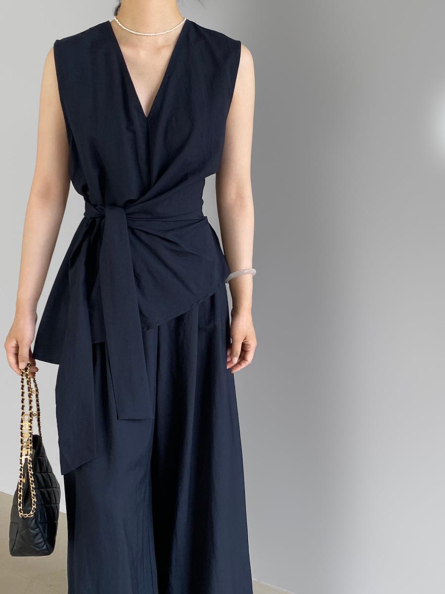 裁缝学苑AS544系带不规则V领无袖衬衫纸样阔腿裤套装打版图