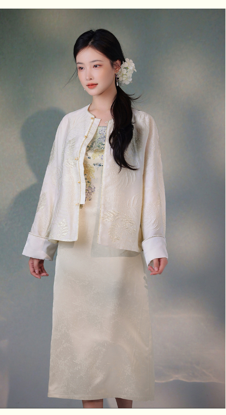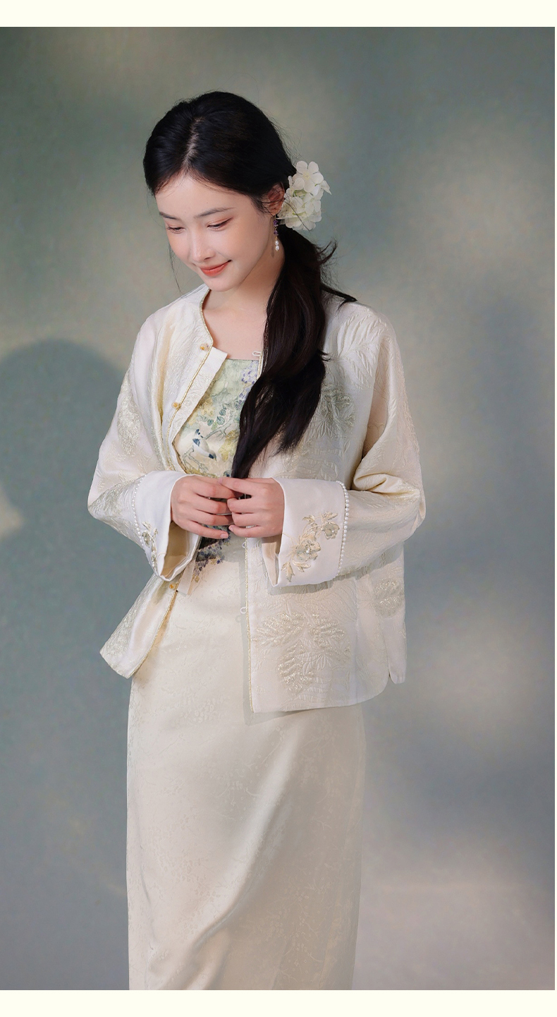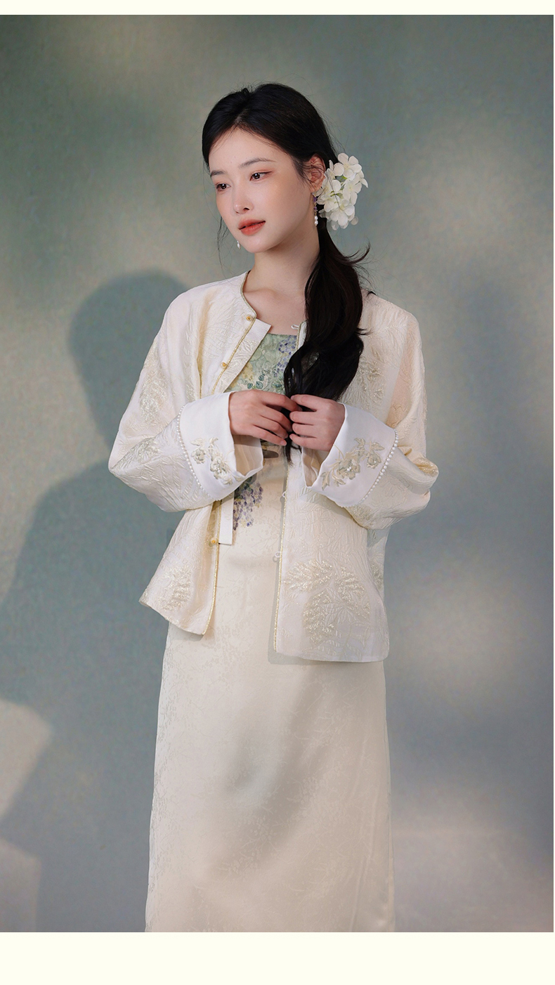 逸红颜洛清2025秋新款金丝线立体提花牡丹刺绣新中式短外套防晒女